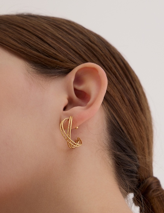 商品名稱:經典交織。銀針耳環(金)