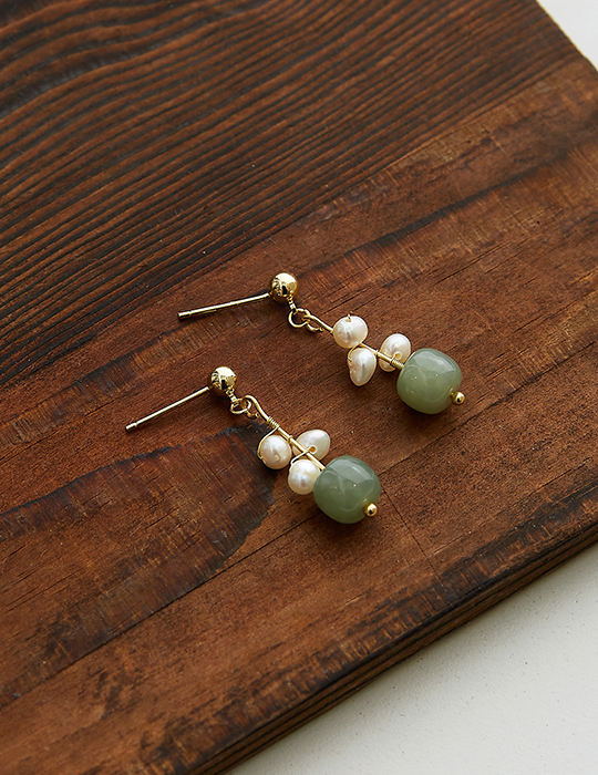 商品材質:14k金電鍍銅/人造珍珠/天然和田玉