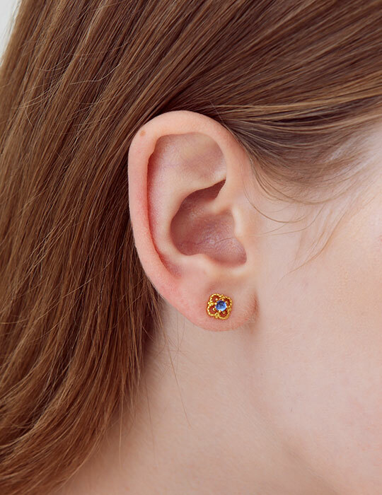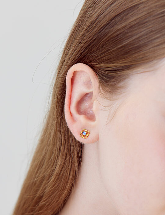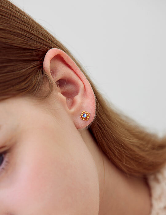 線條感藍鑽花花。銀針耳環