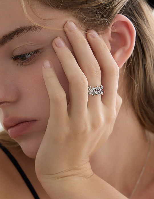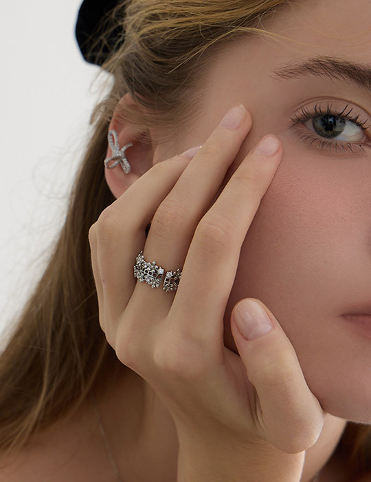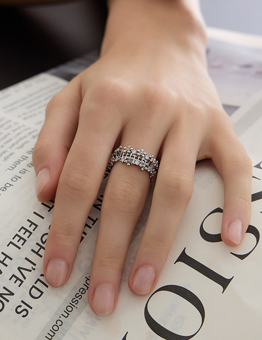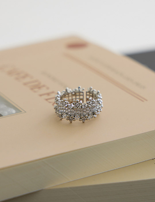 花朵滿鑽環繞可調式戒指