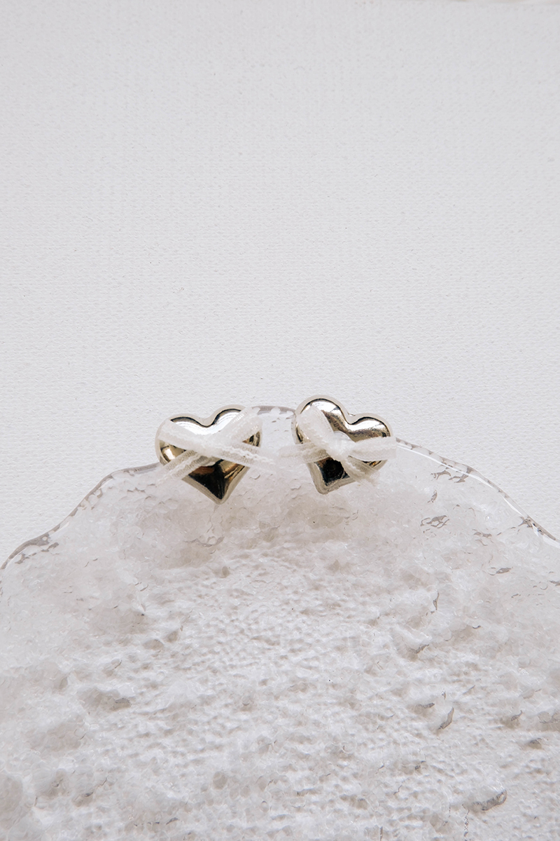 蕾絲絲帶蝴蝶結愛心。針式耳環(白)
