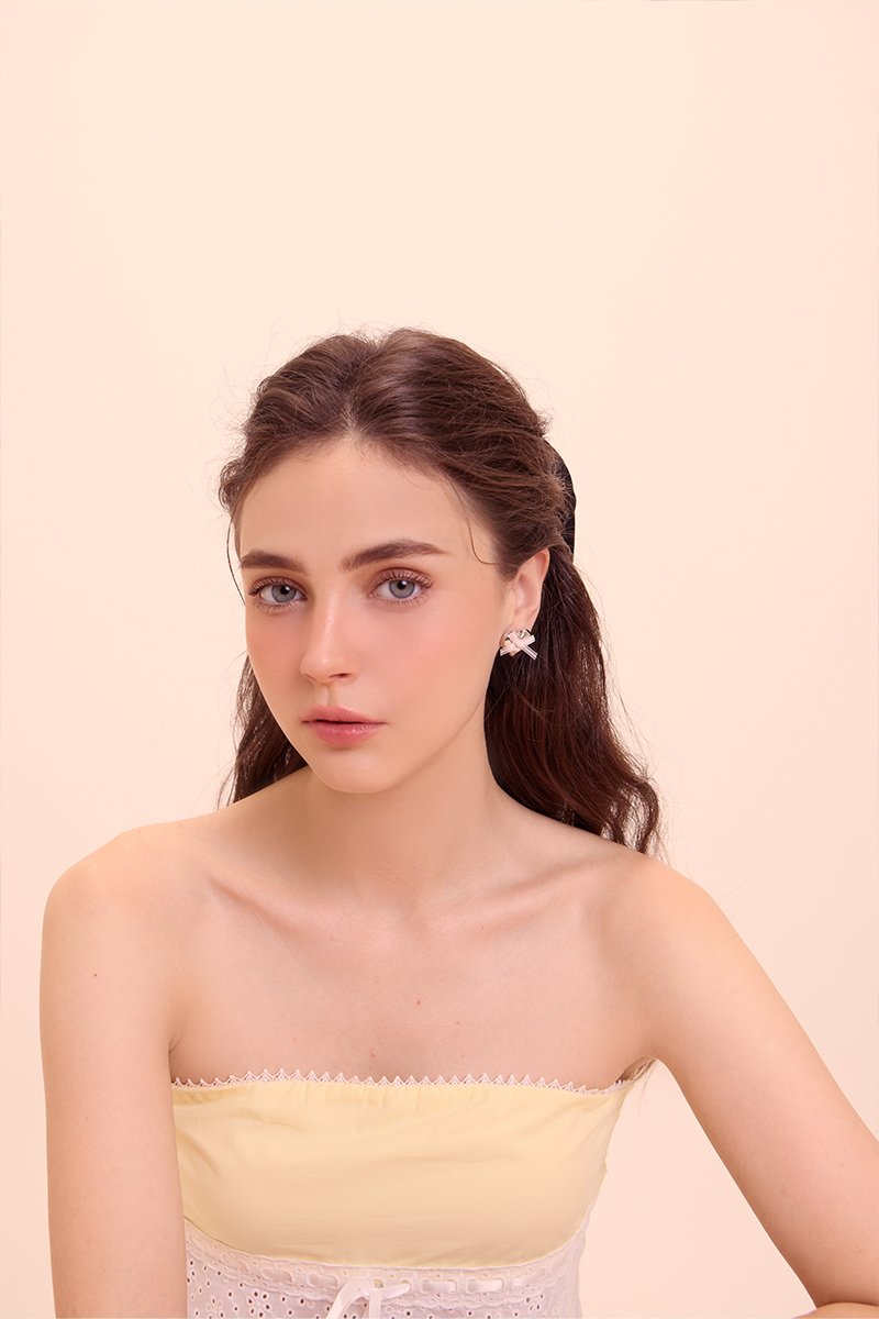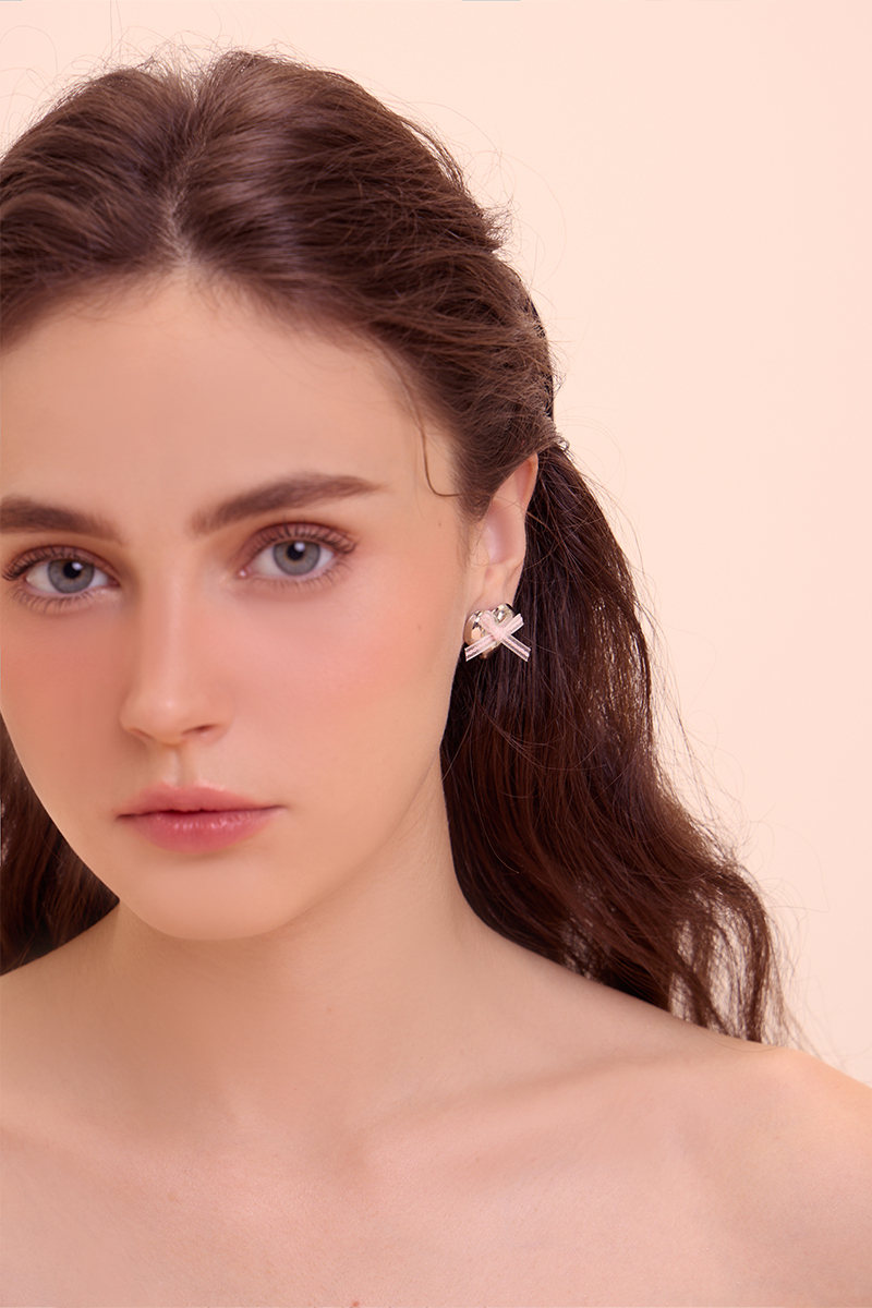 商品名稱: 蕾絲絲帶蝴蝶結愛心。針式耳環(粉)