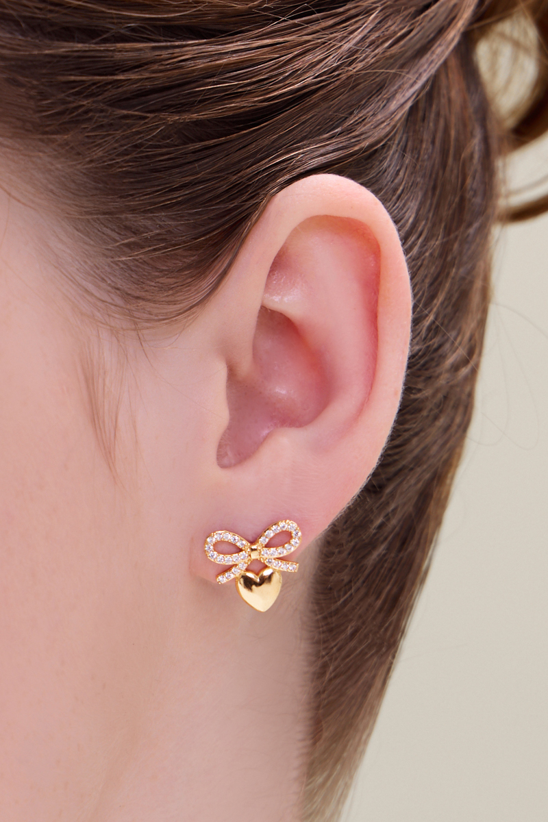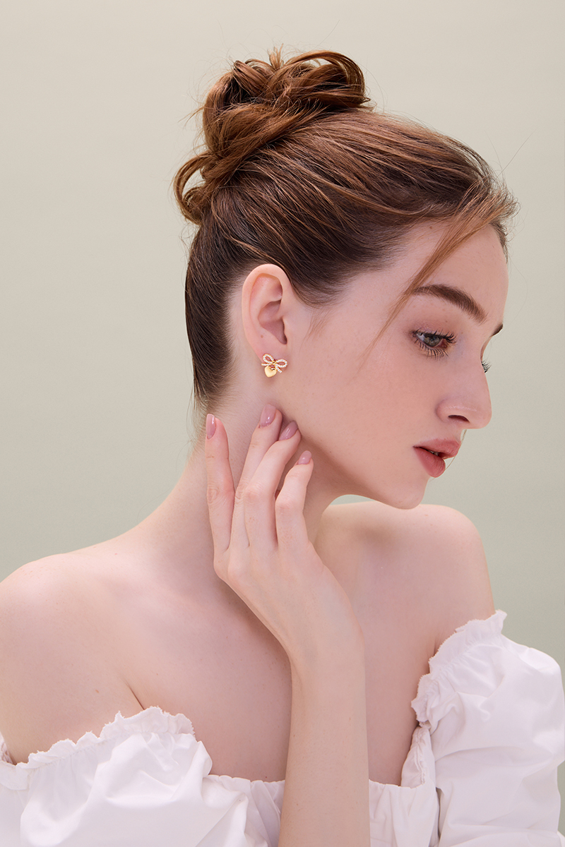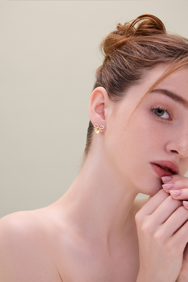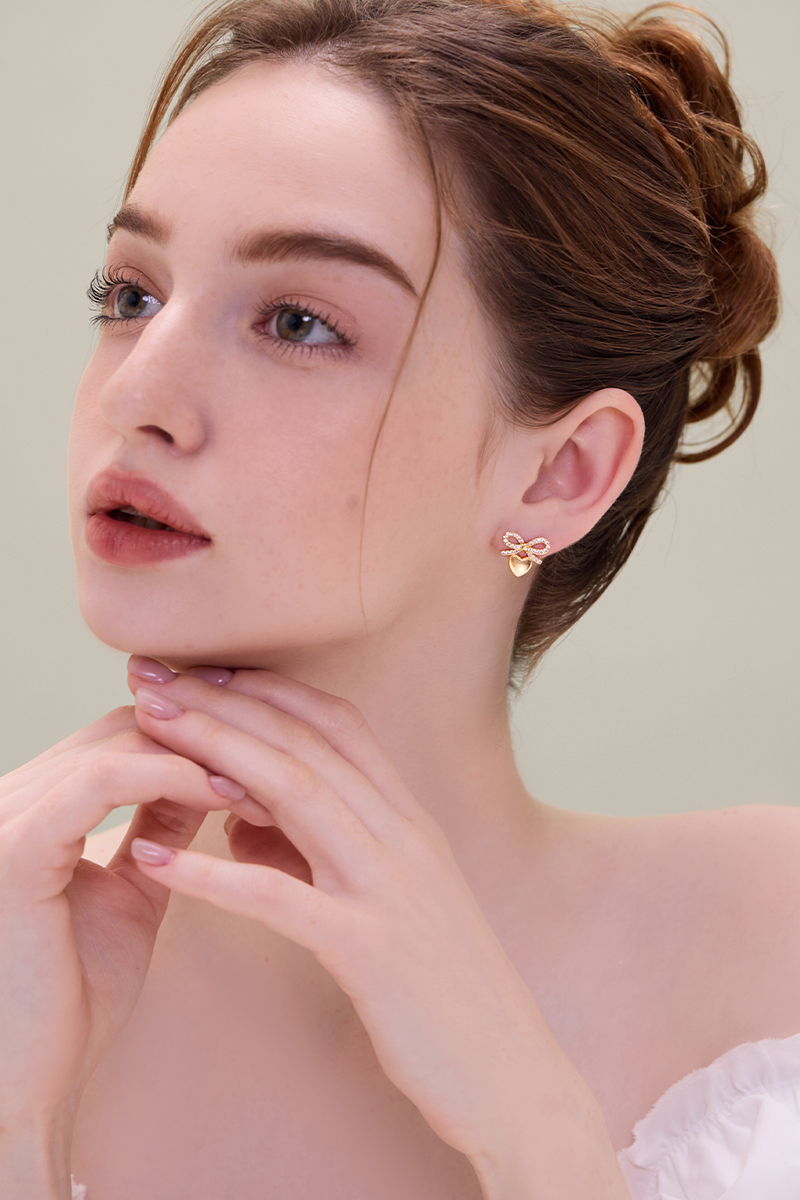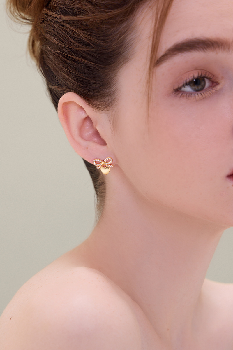 蝴蝶結愛心。夾式耳環