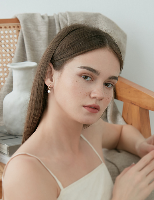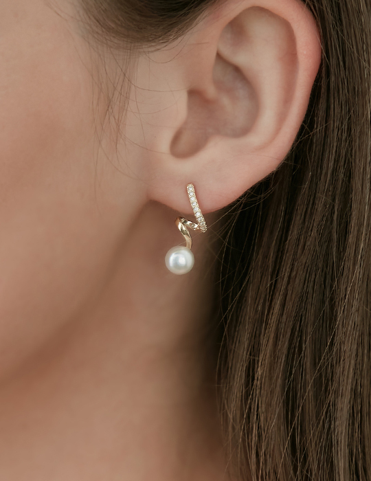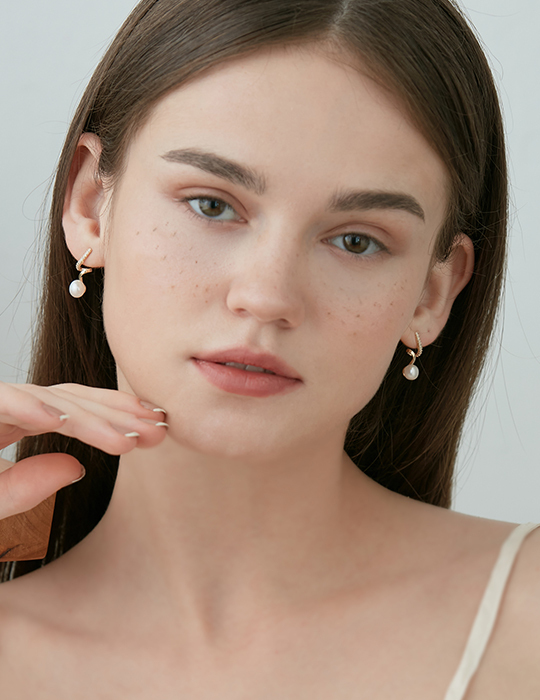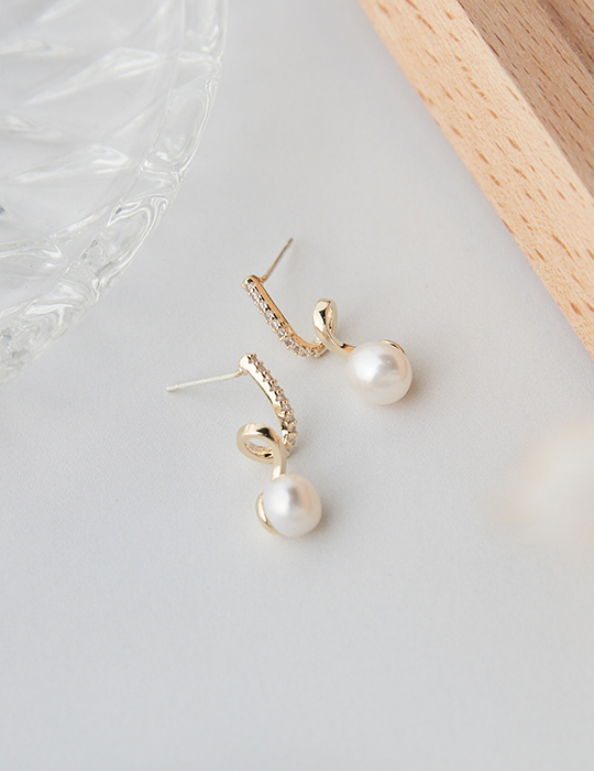 螺旋線條感珍珠。銀針耳環