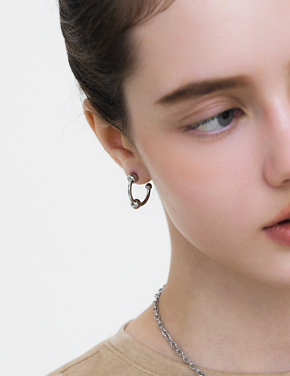 質感C型間珠。針式耳環