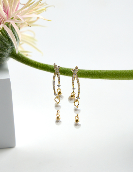 商品材質:14K金電鍍銅/鋯石/人造珍珠