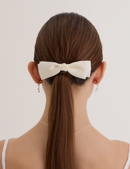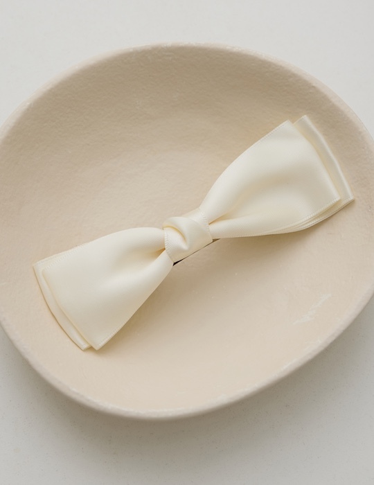 質感緞面蝴蝶結髮夾(奶白)