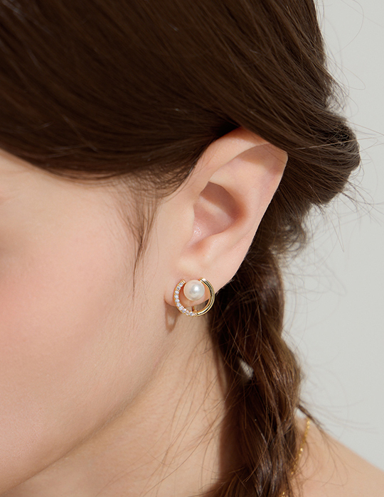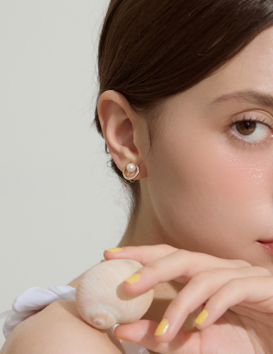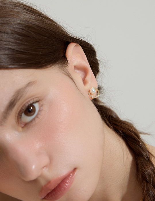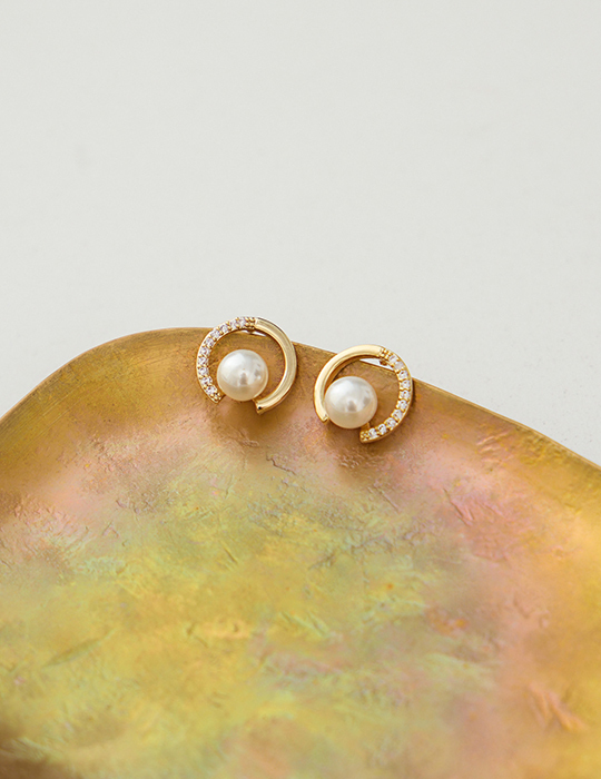 商品名稱:輕奢珍珠半圈鑽。夾式耳環