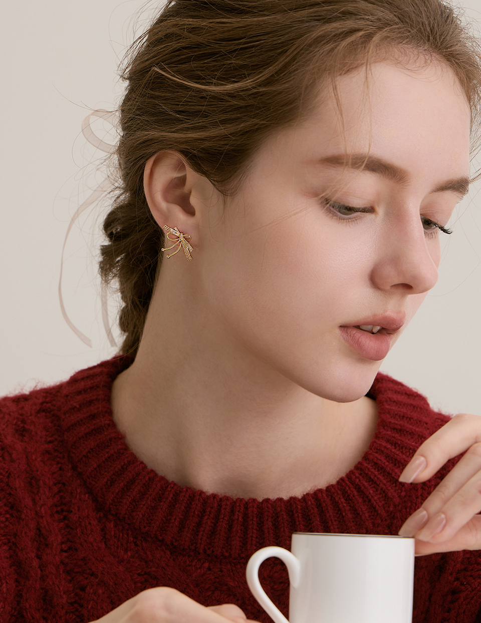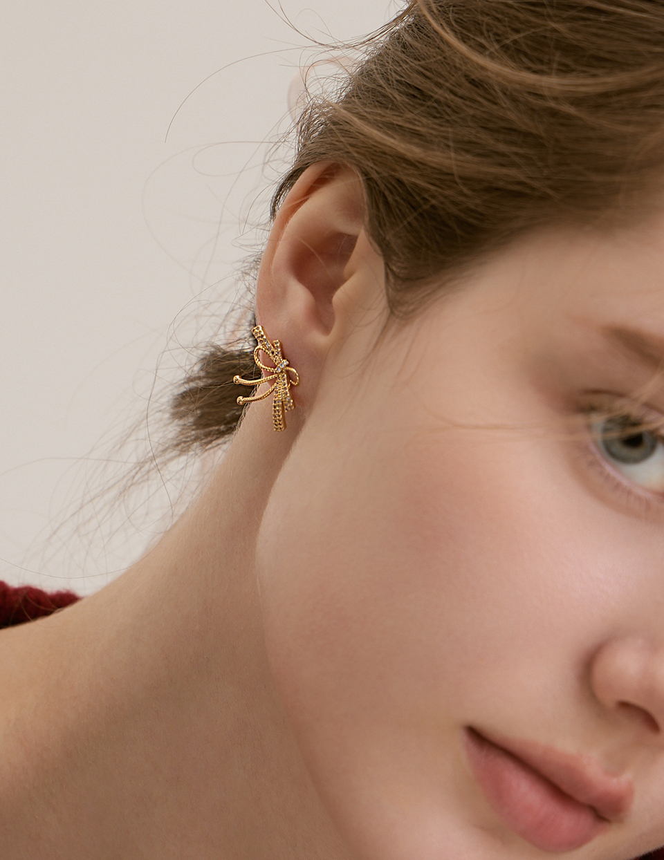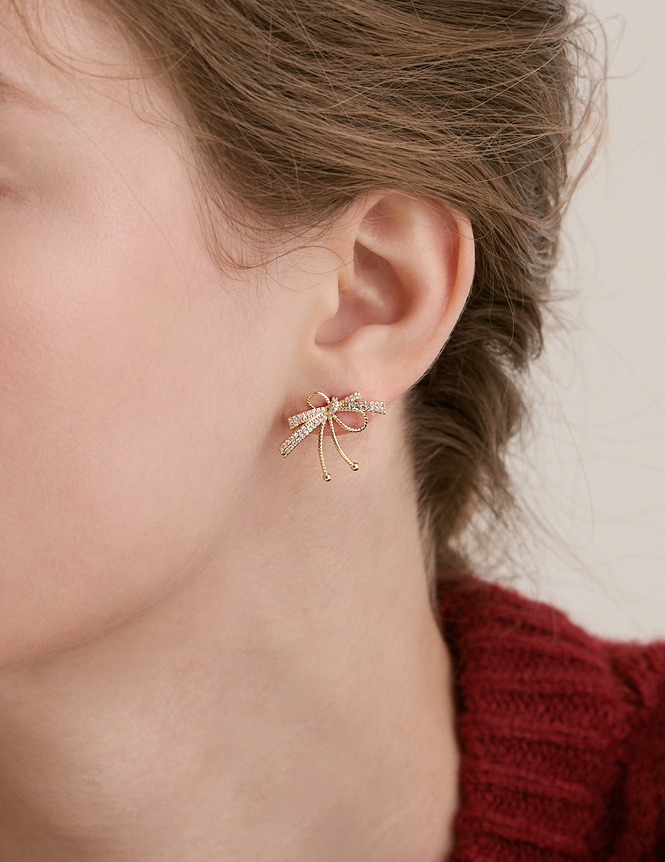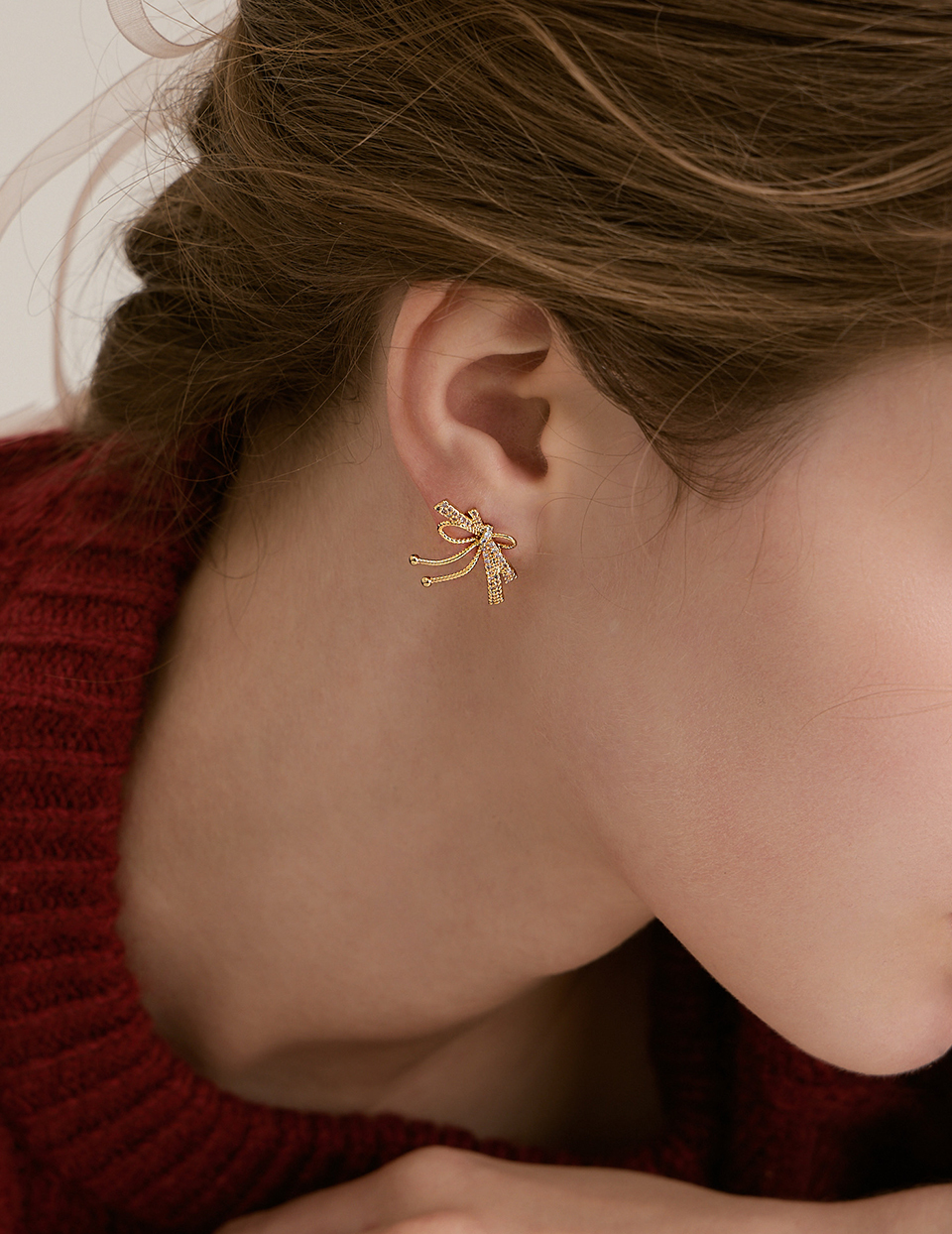 商品名稱:輕奢蝴蝶結線條。銀針耳環(金)