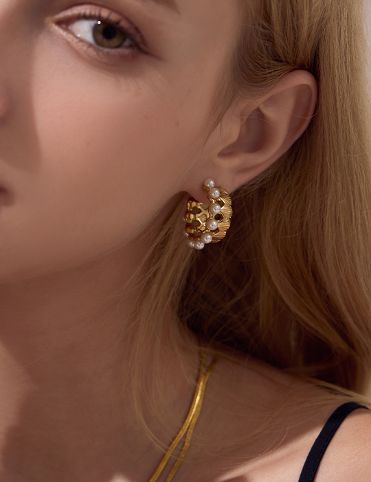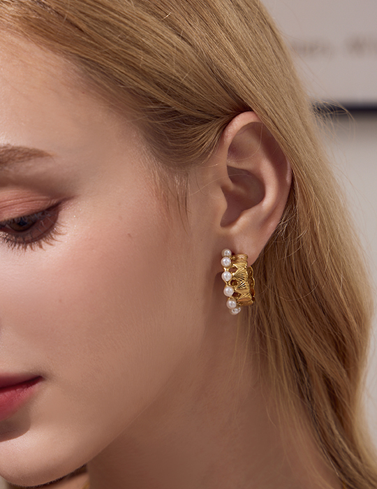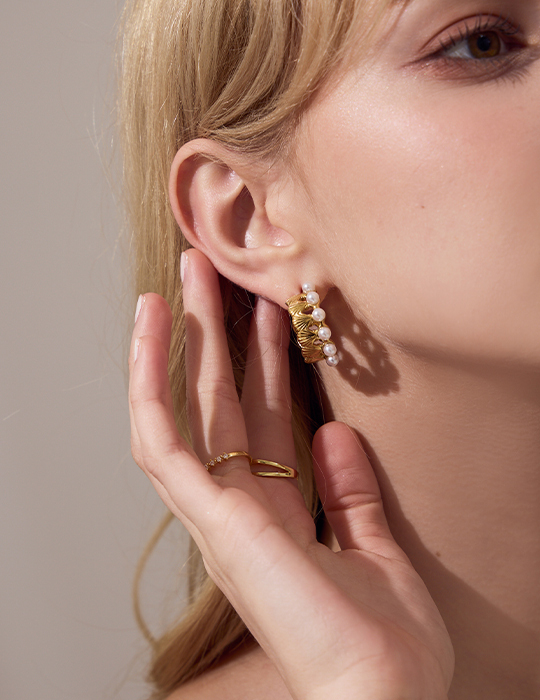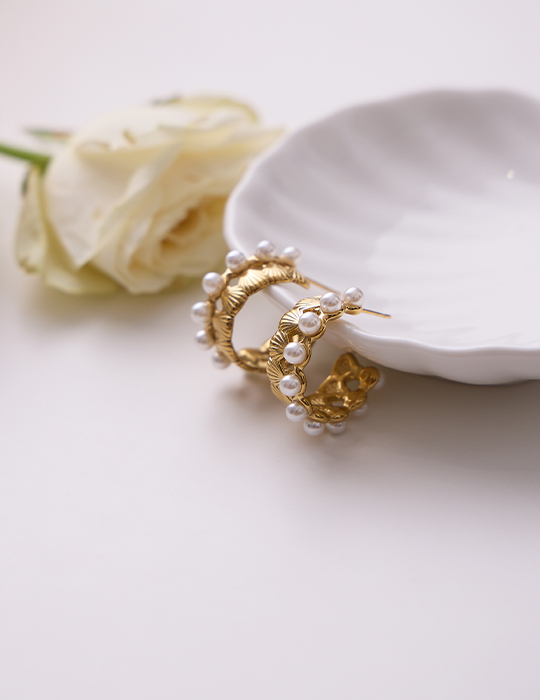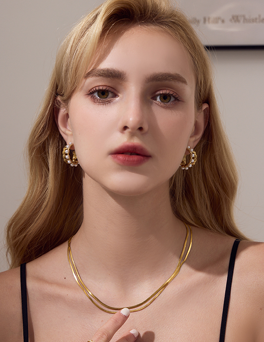商品材質:18K金電鍍鈦鋼/手工珍珠