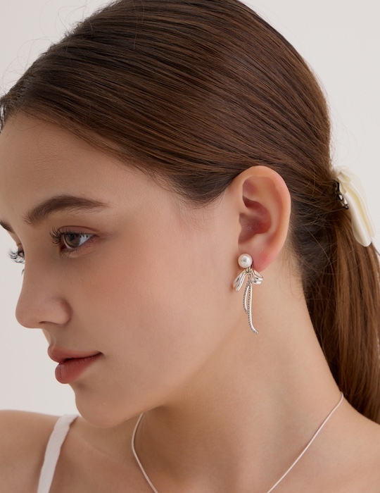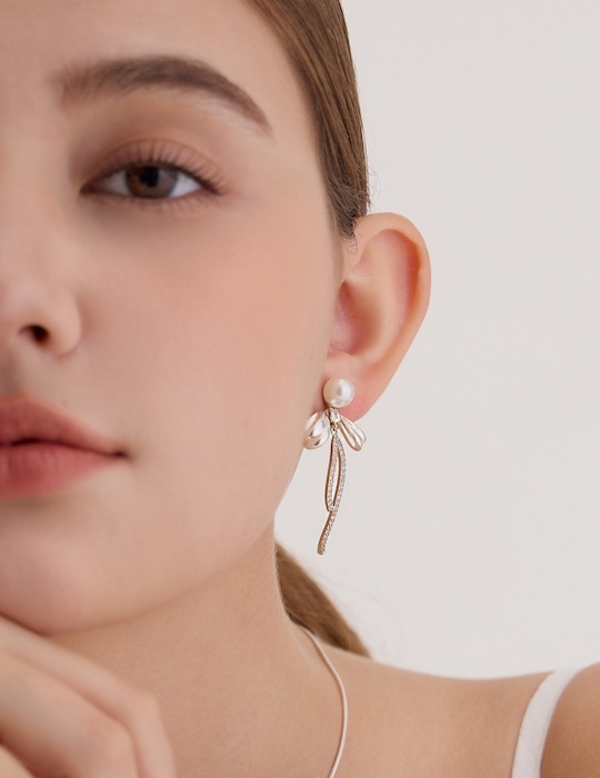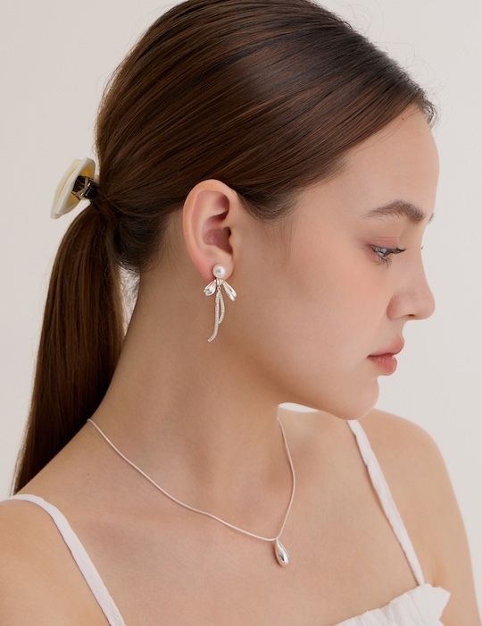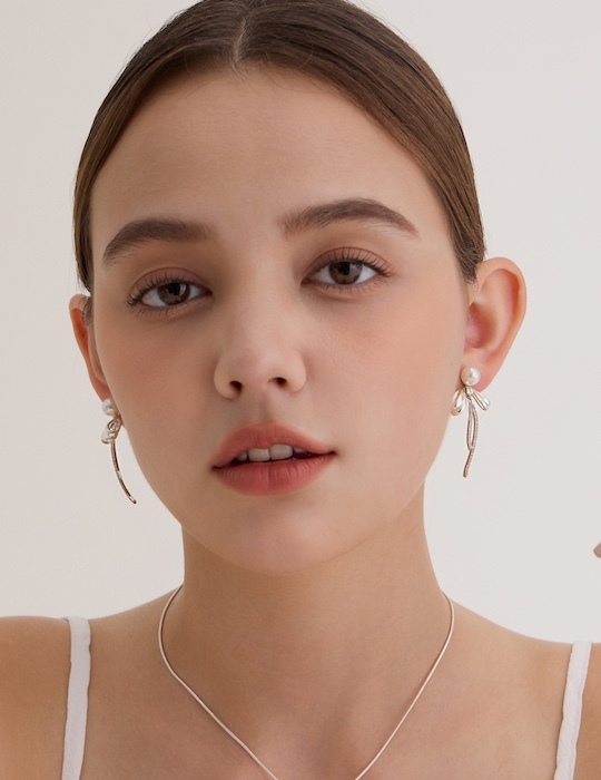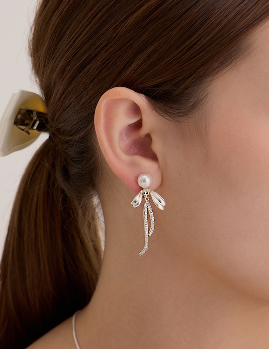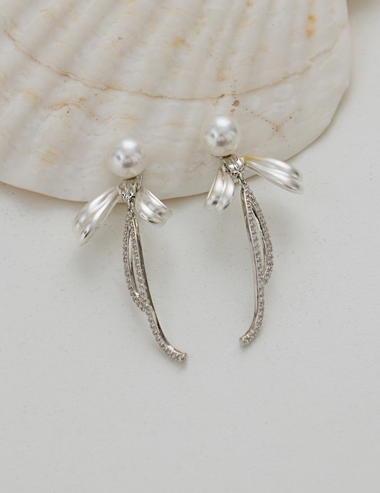 商品名稱:輕霧蝴蝶結珍珠。夾式耳環