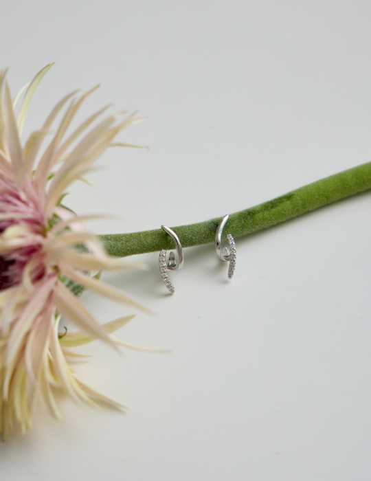 迷你交錯鋯石。銀針耳環