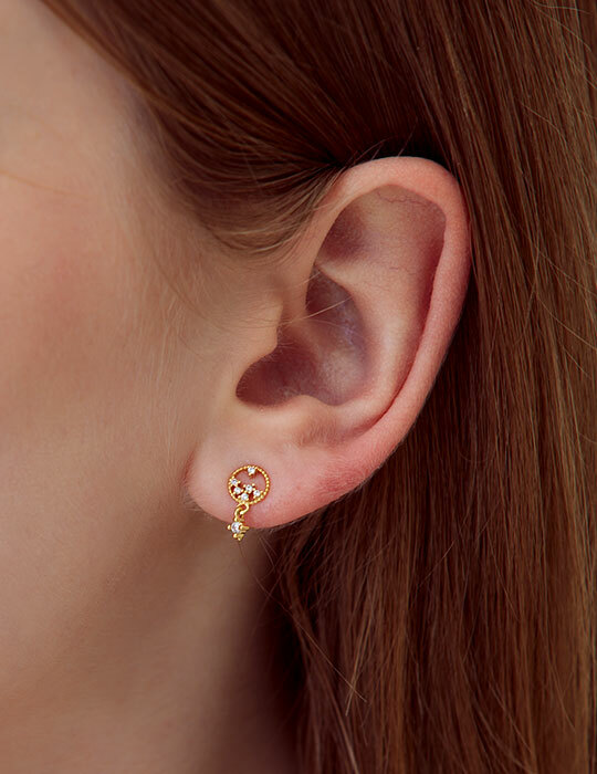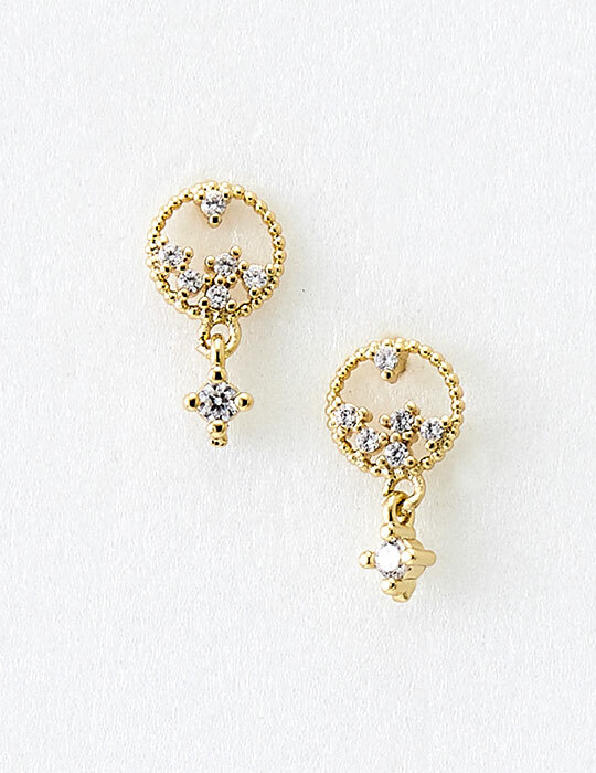 迷你小碎鑽吊墜。銀針耳環