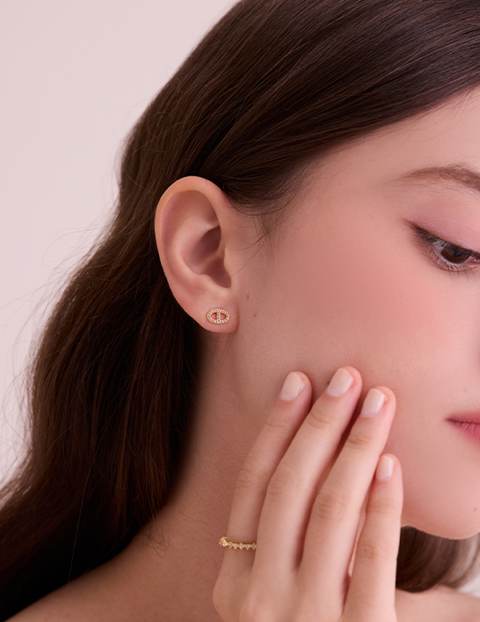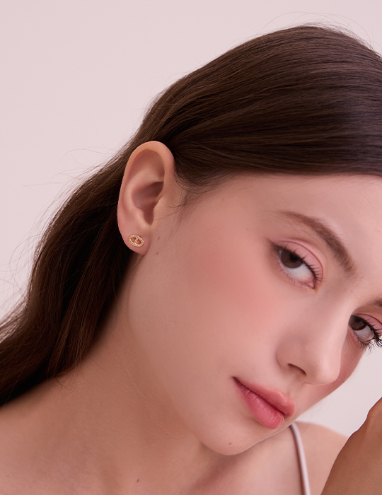 商品名稱:迷你鑽面小豬鼻。銀針耳環(金)
