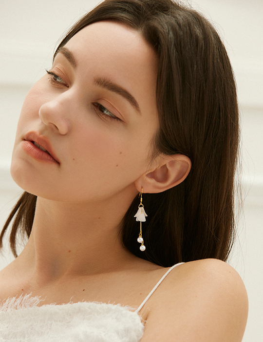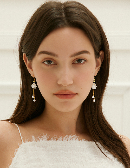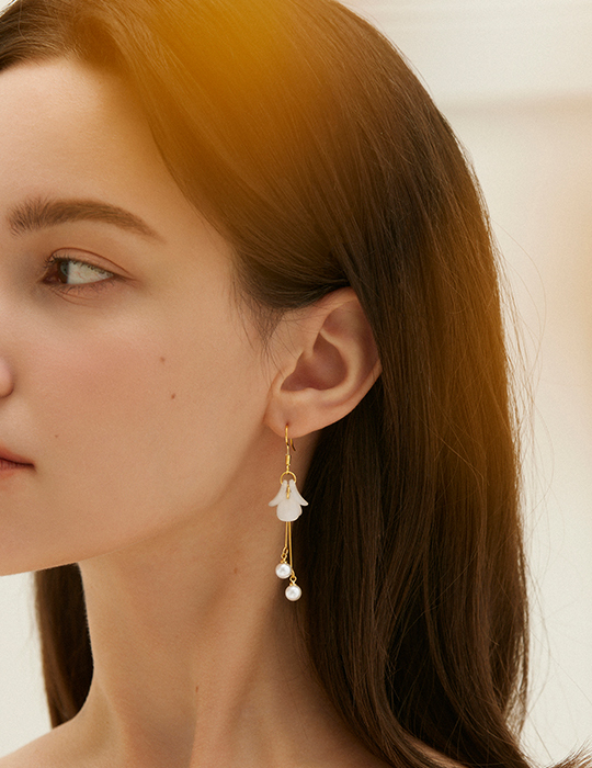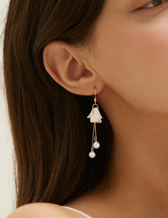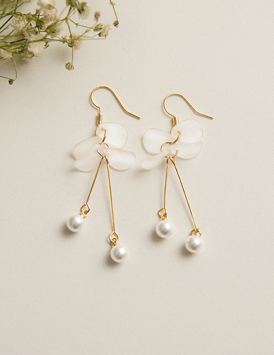 透感花瓣珍珠吊墜。針式耳環