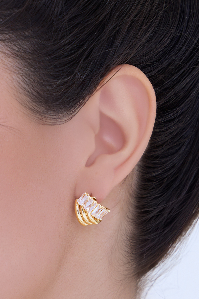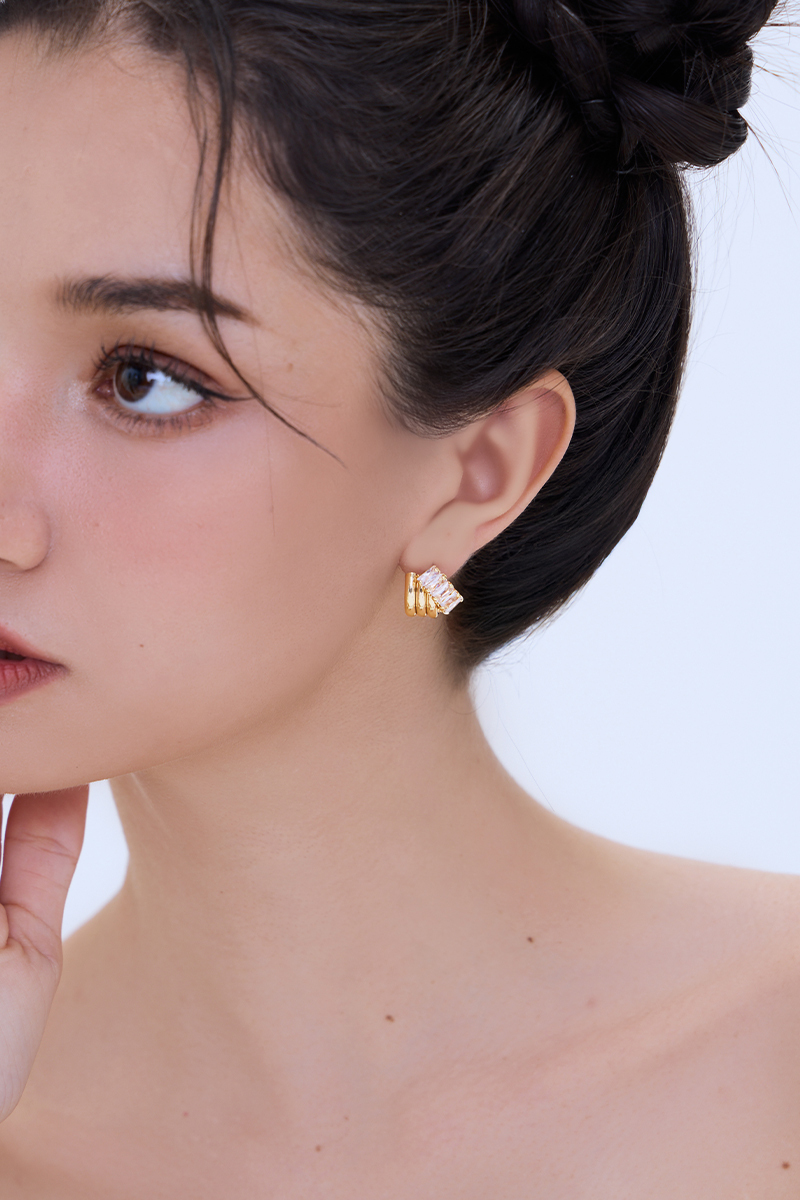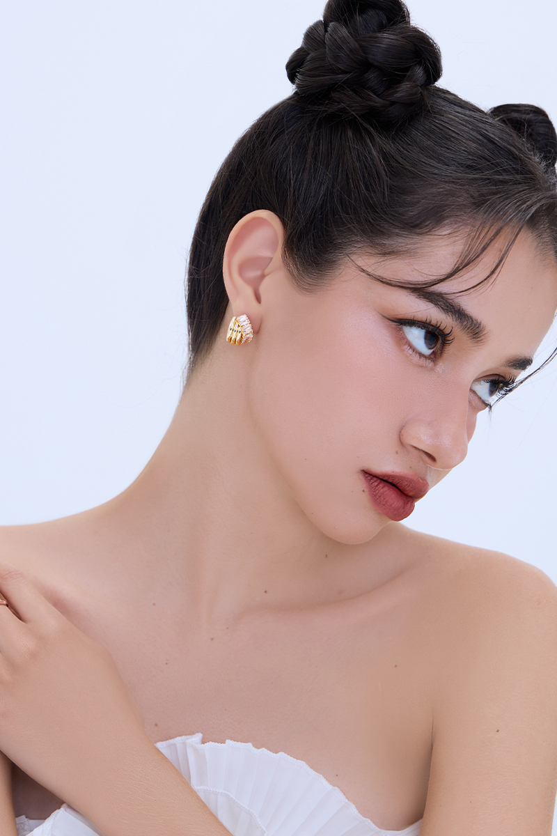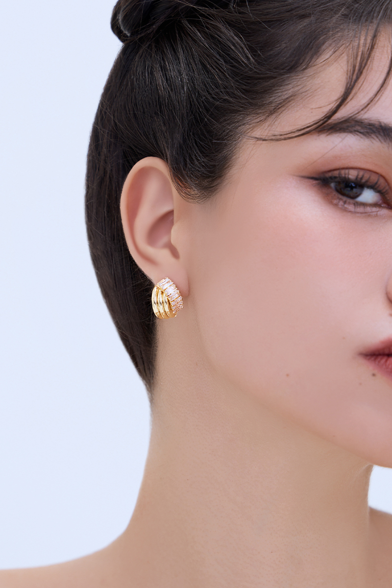 金屬交錯鋯石。銀針耳環