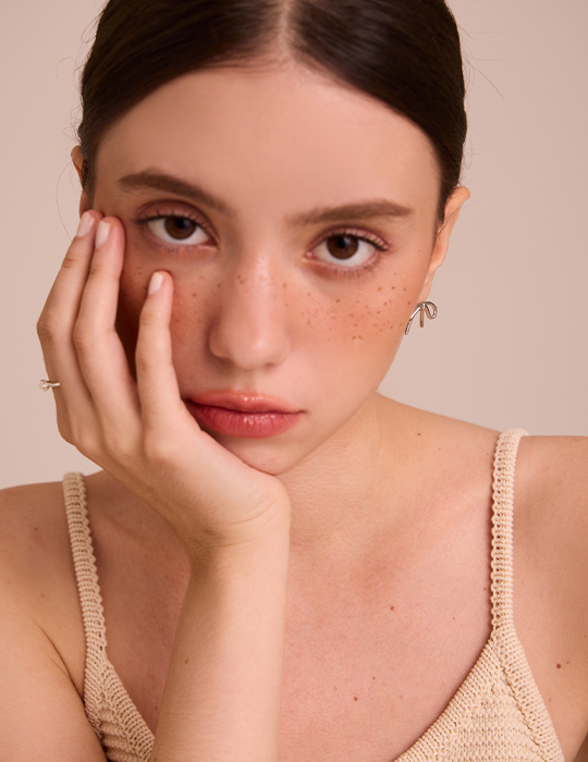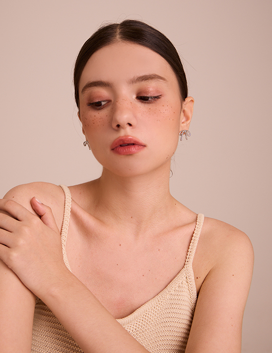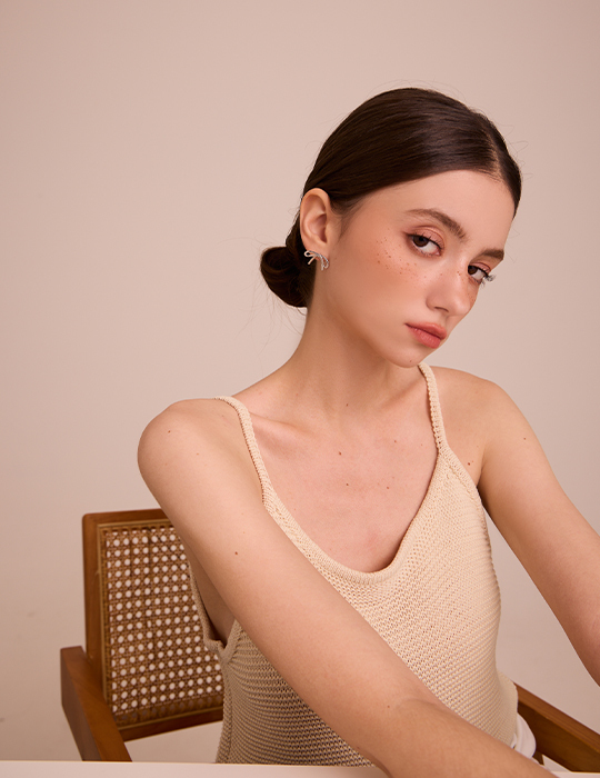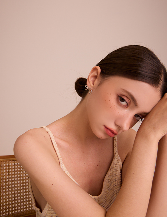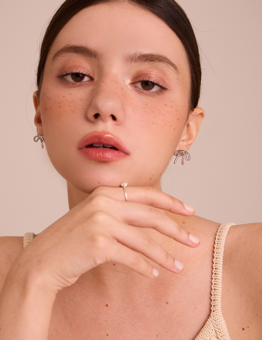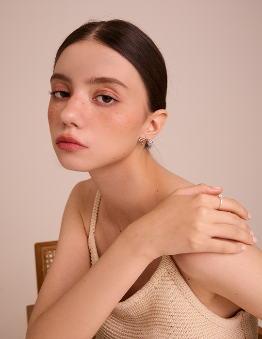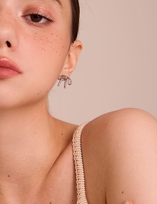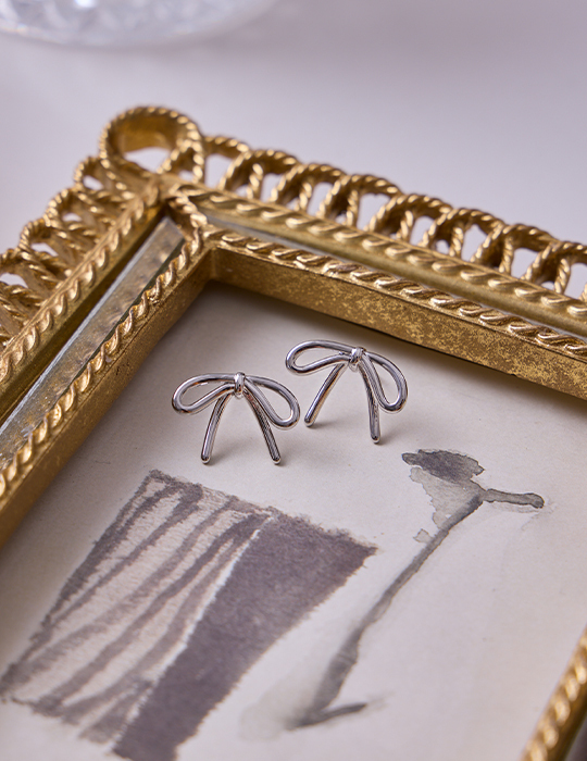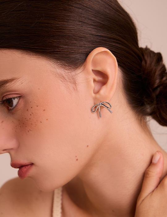金屬蝴蝶結 。針式耳環 (銀)