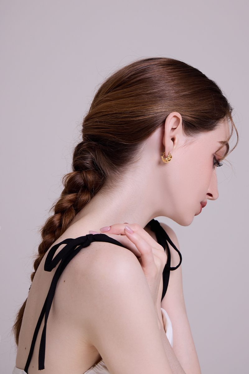 商品名稱: 金屬鍊條。銀針耳環(金)