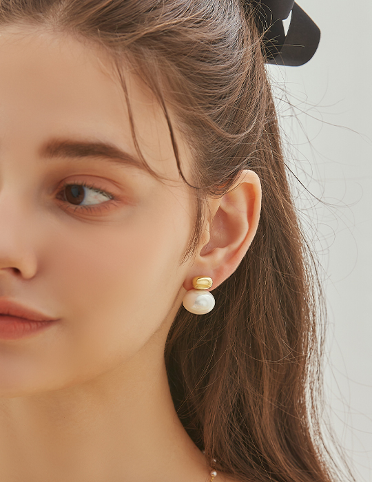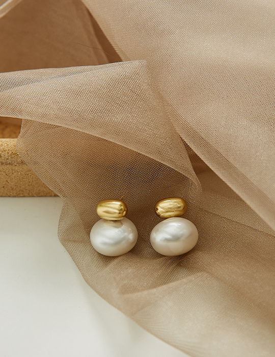 金豆懸吊珍珠。鋼針耳環