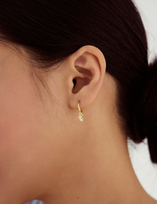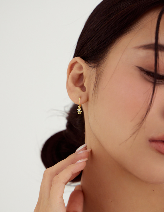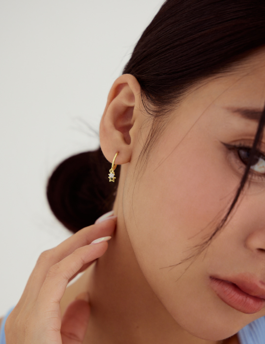 鈎掛流動鋯石。銀針耳環