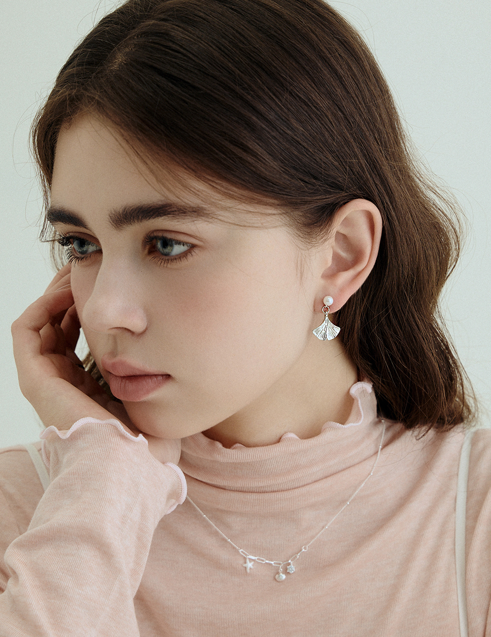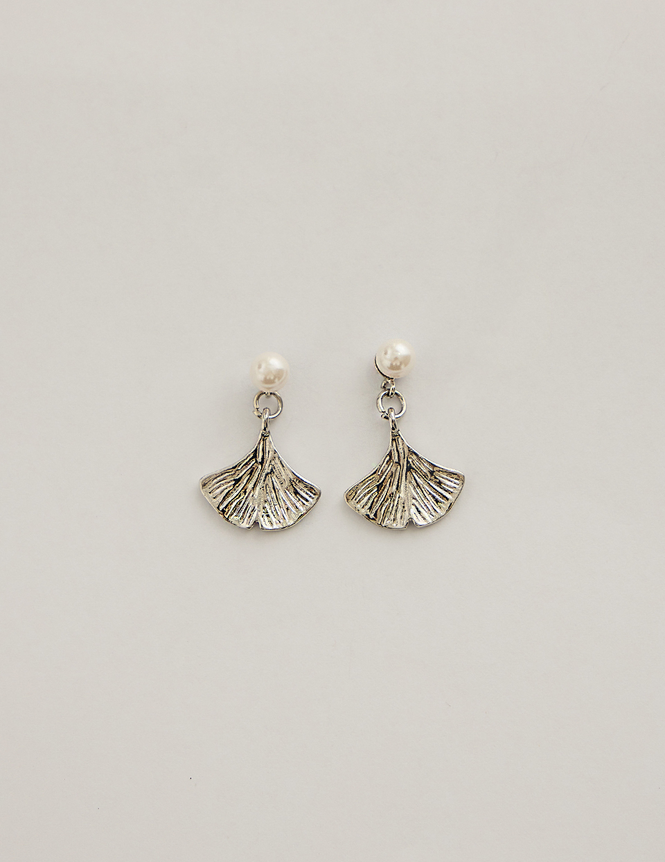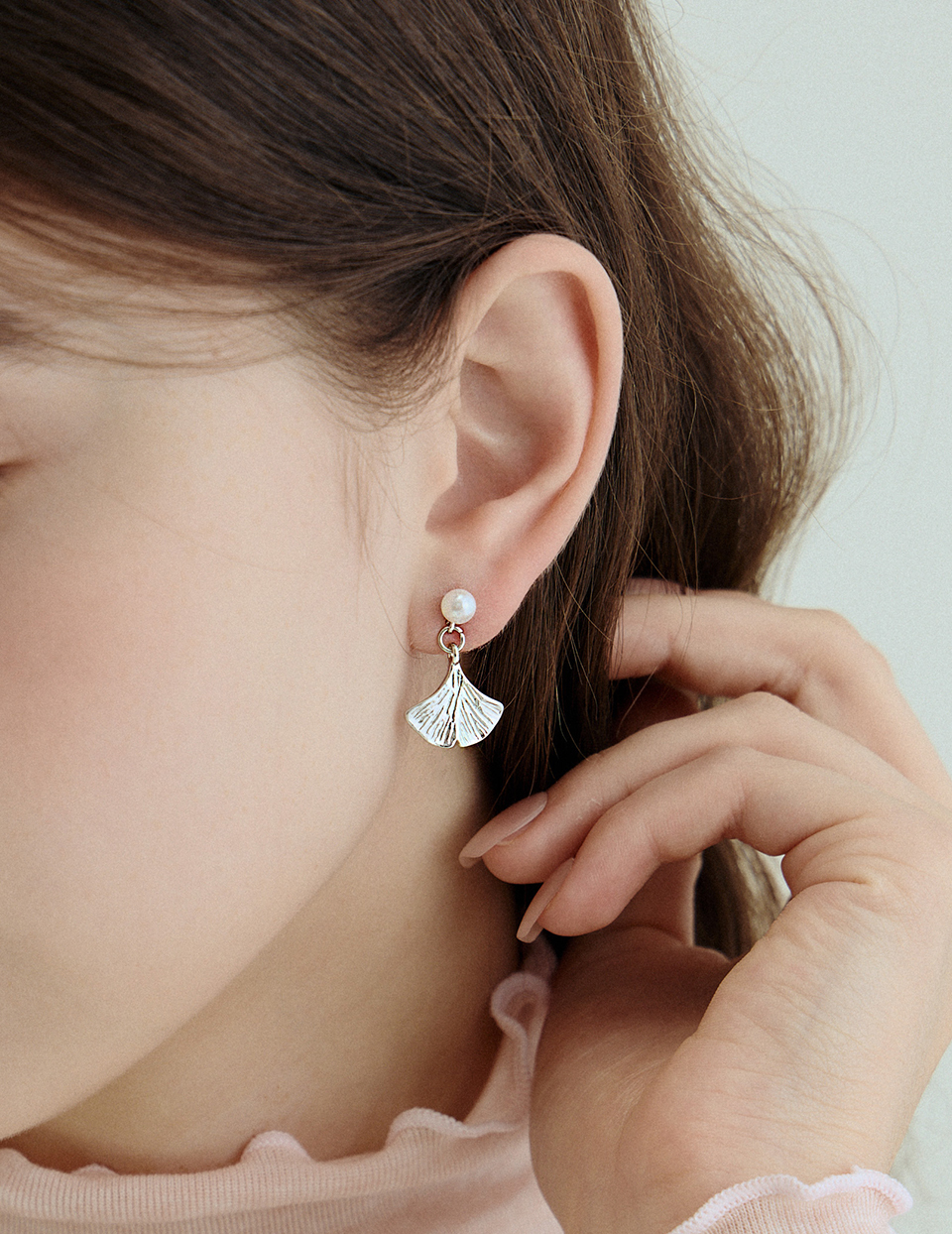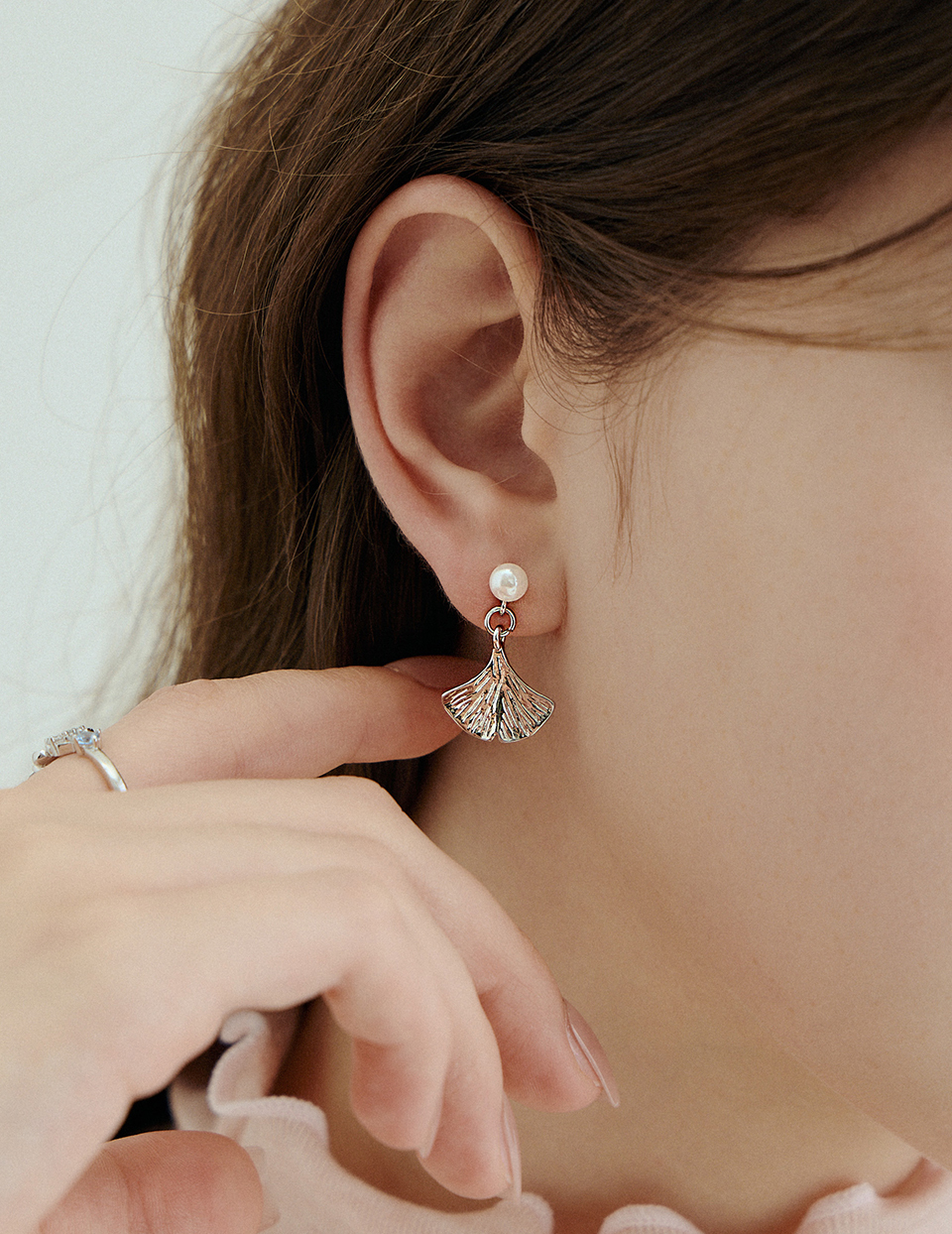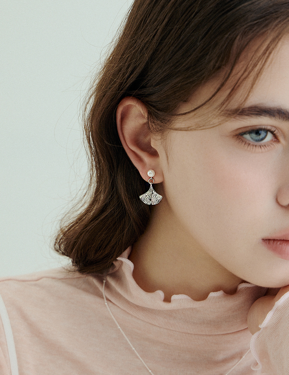 商品名稱:銀杏小珍珠垂墜。針式耳環