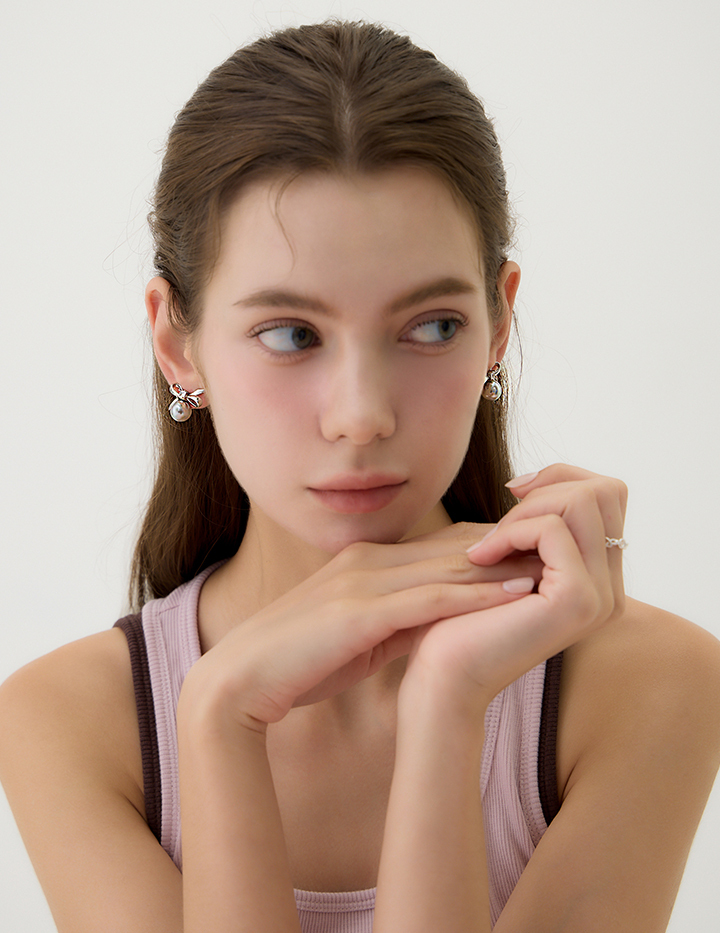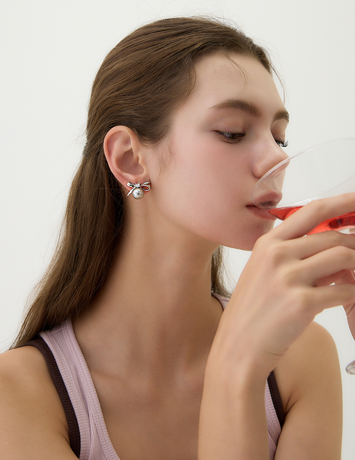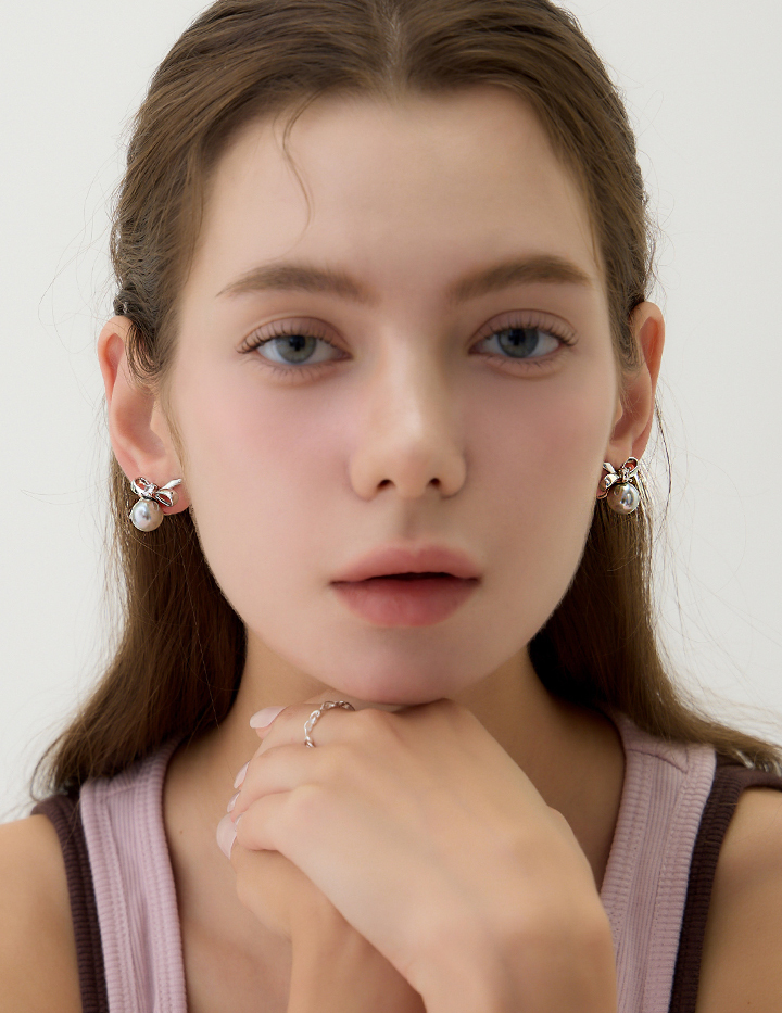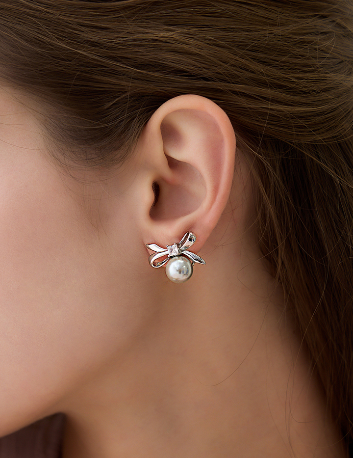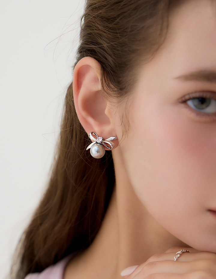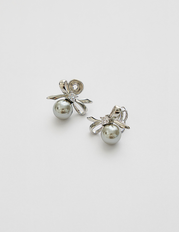 商品名稱:銀河圓珠蝴蝶結。夾式耳環