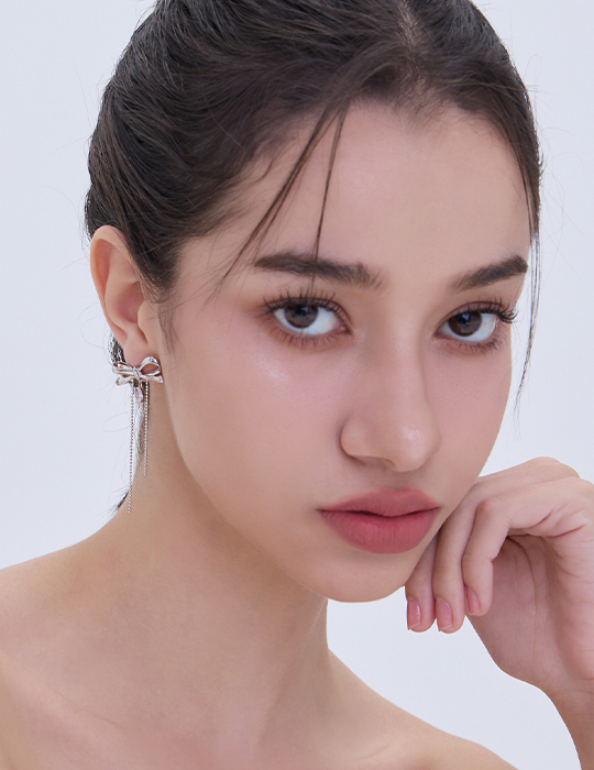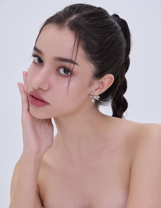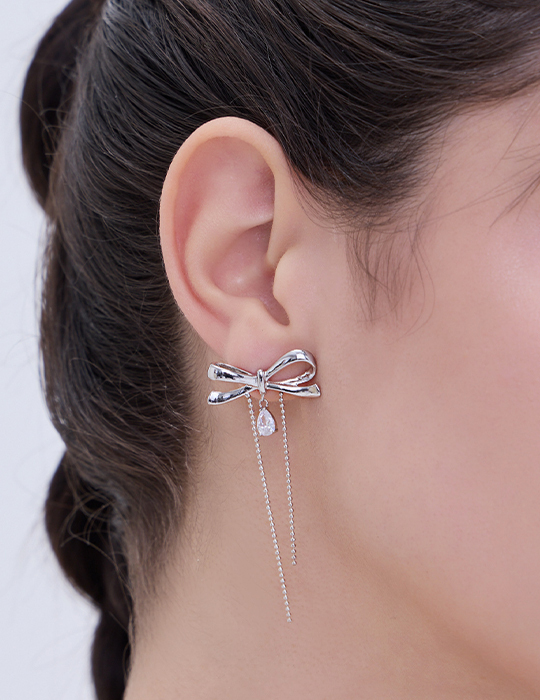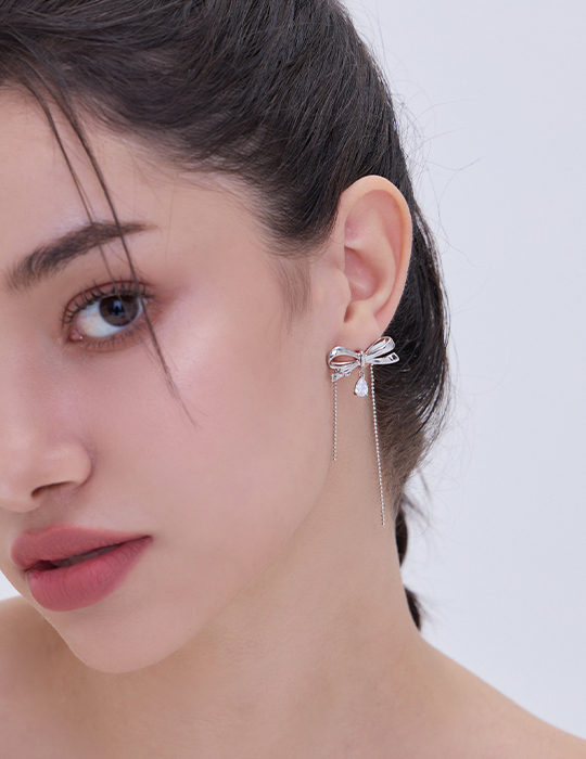 商品名稱:銀珠蝴蝶結。銀針耳環