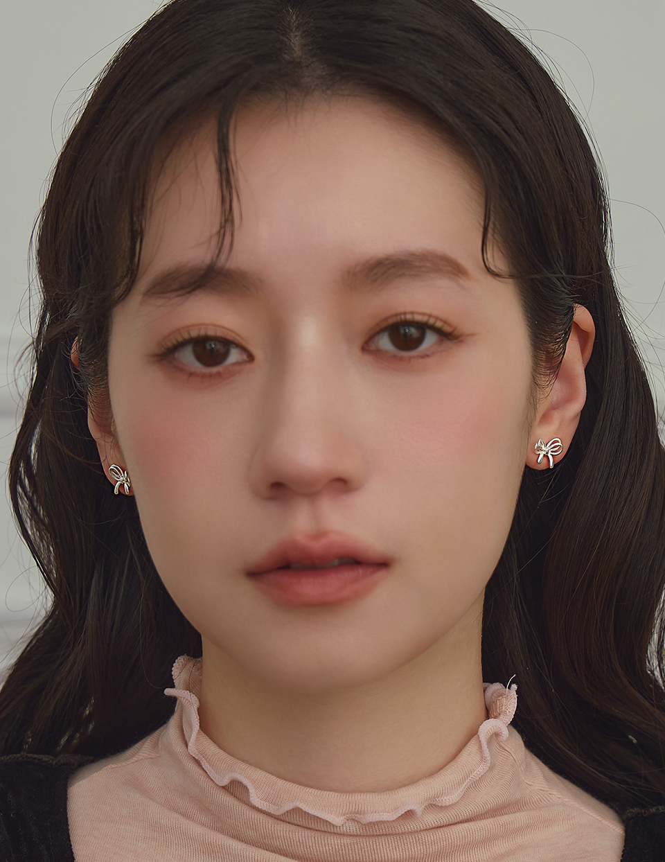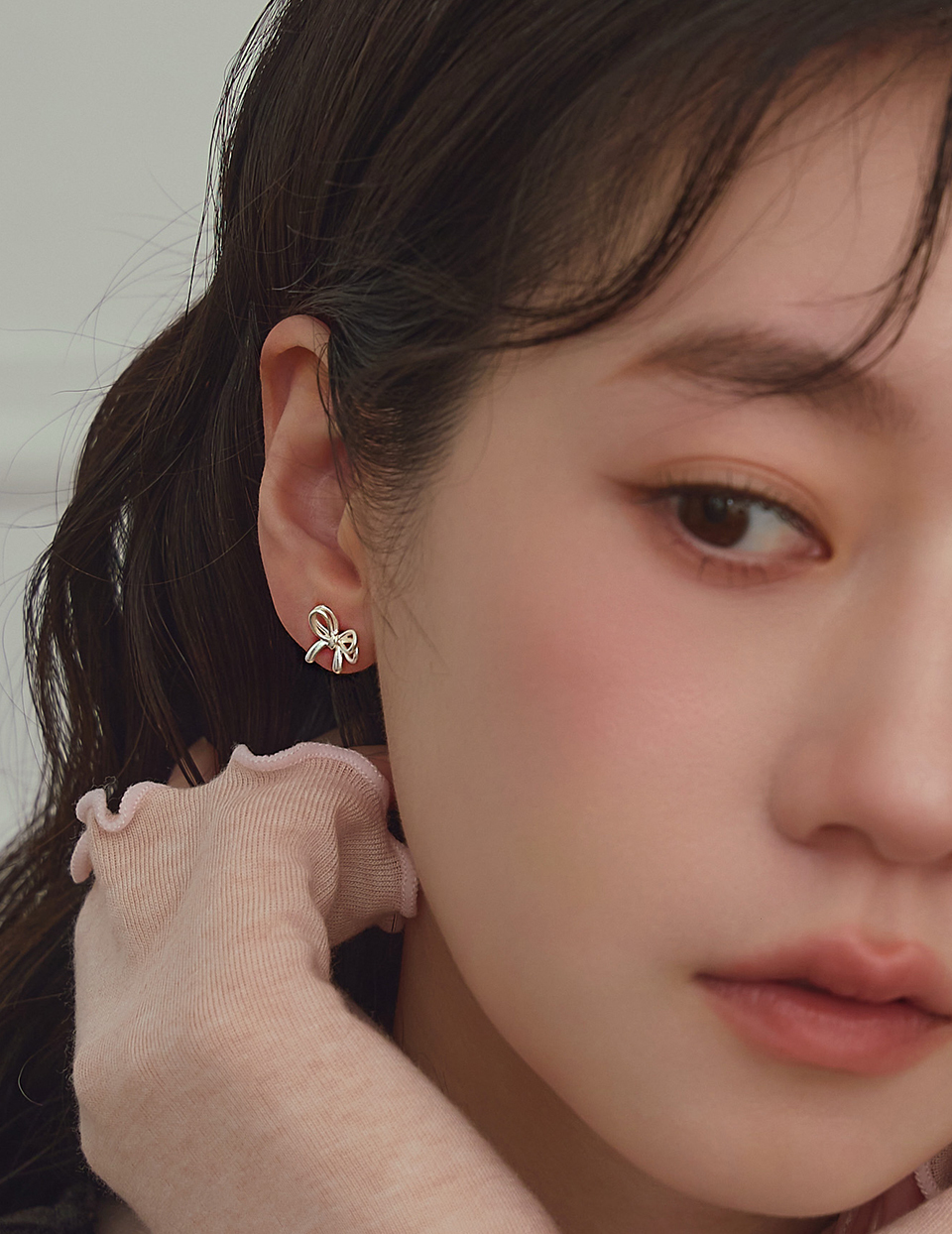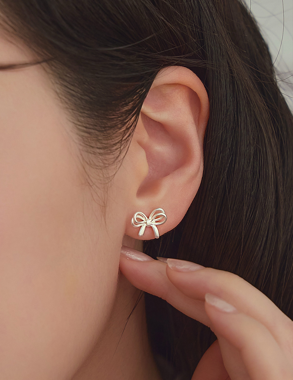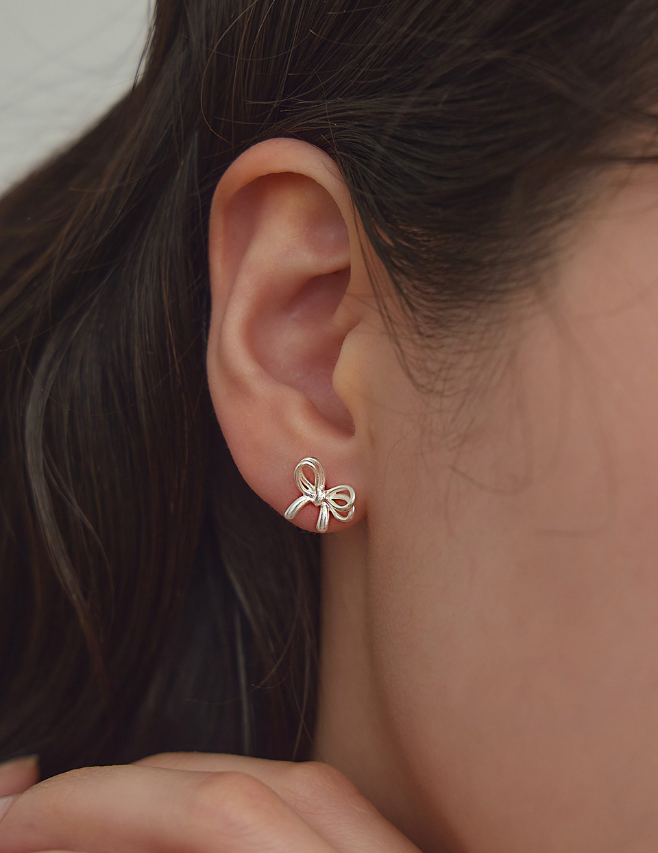 銀線蝴蝶結。針式耳環