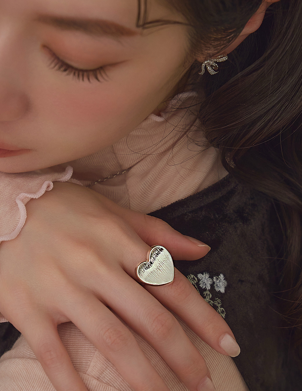 銀色愛心可調式戒指
