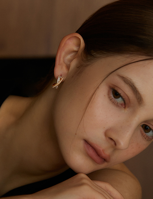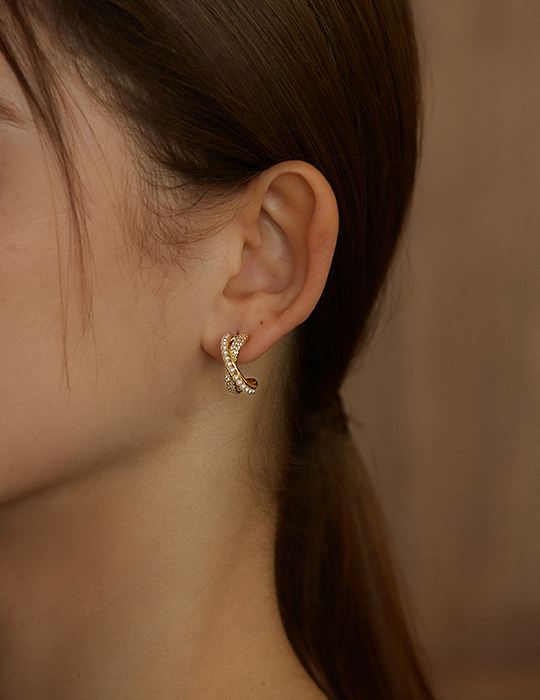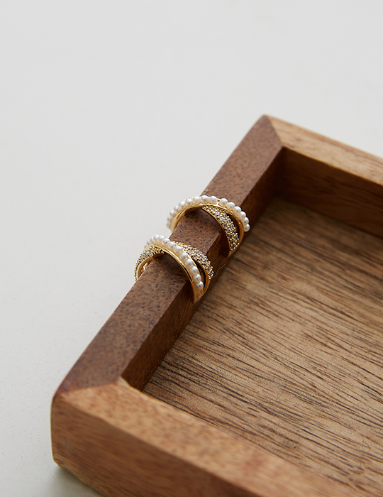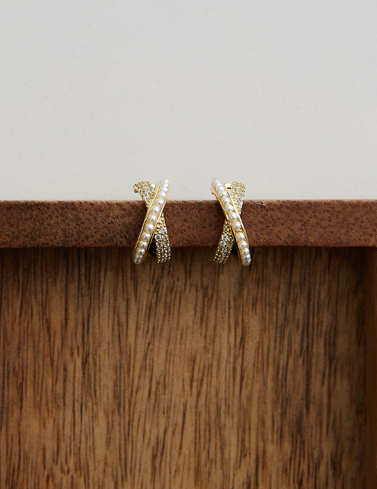 鋯石珍珠交錯耳夾