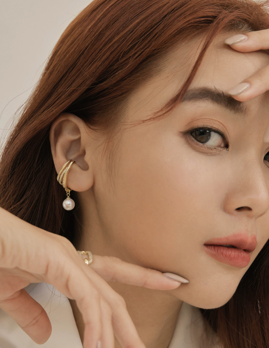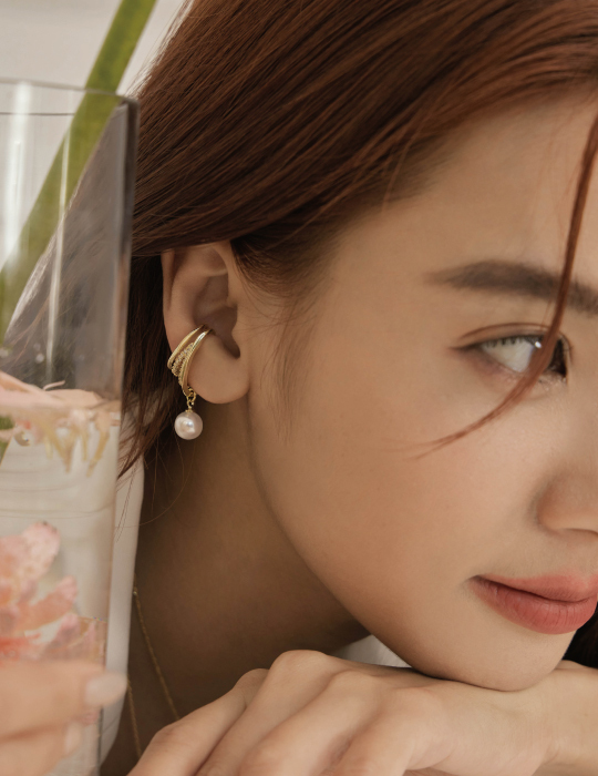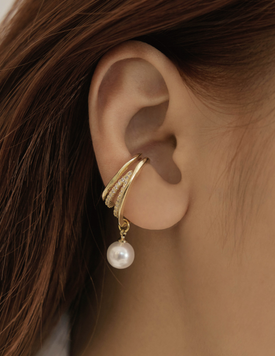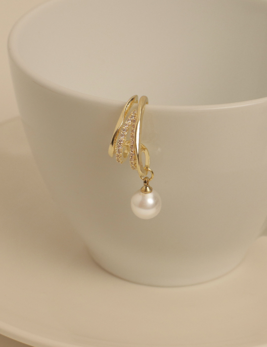 鑲鑽垂墜珍珠耳骨夾(單支)