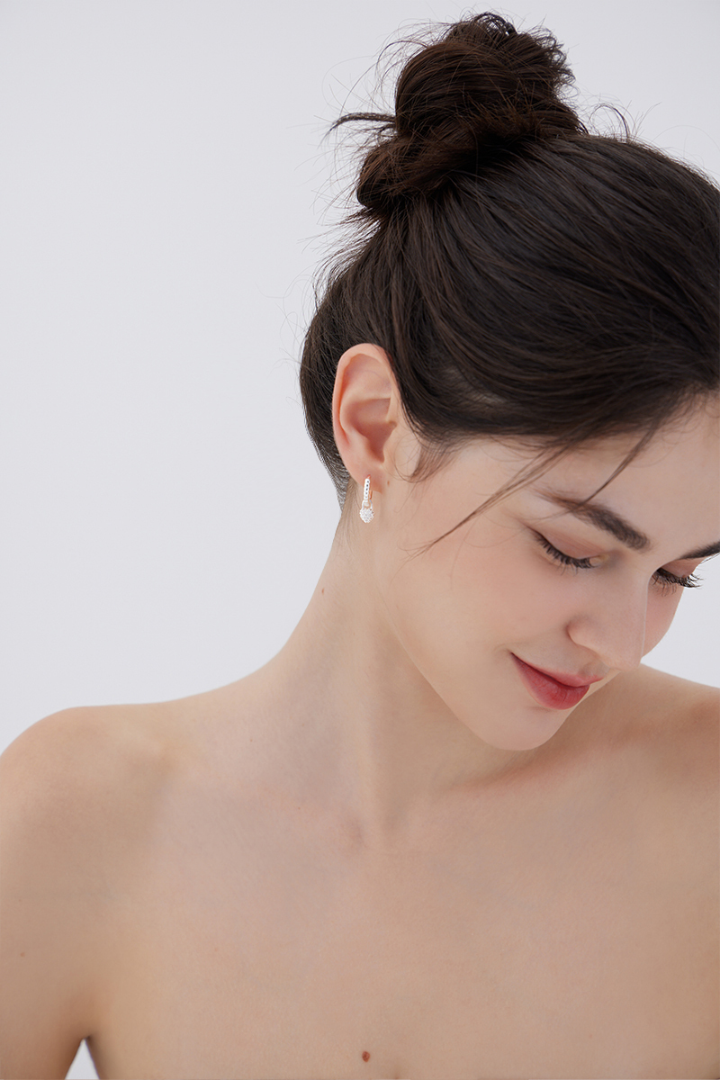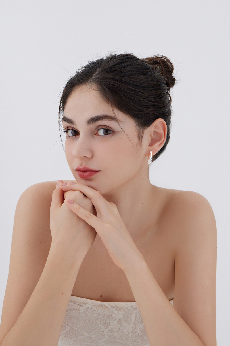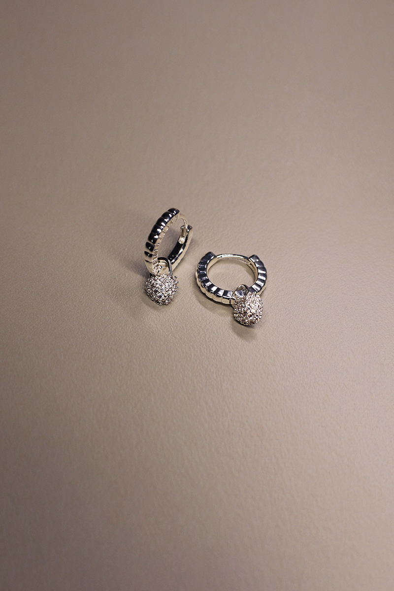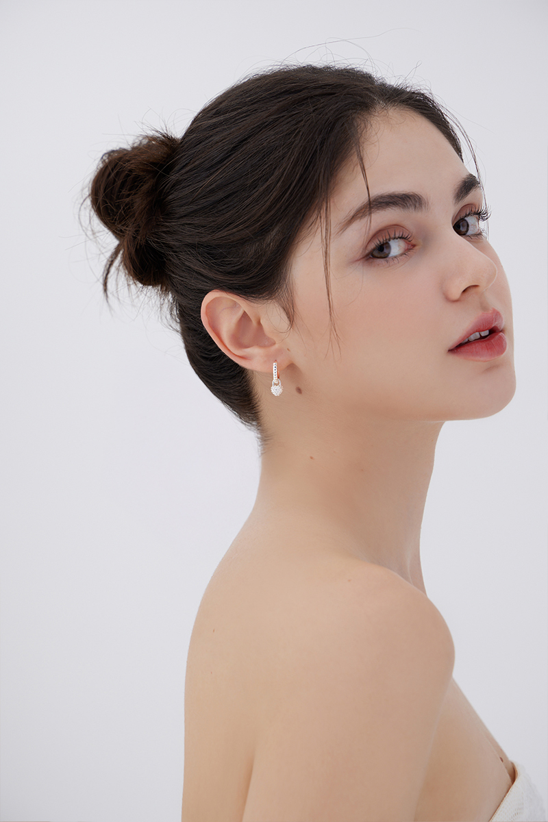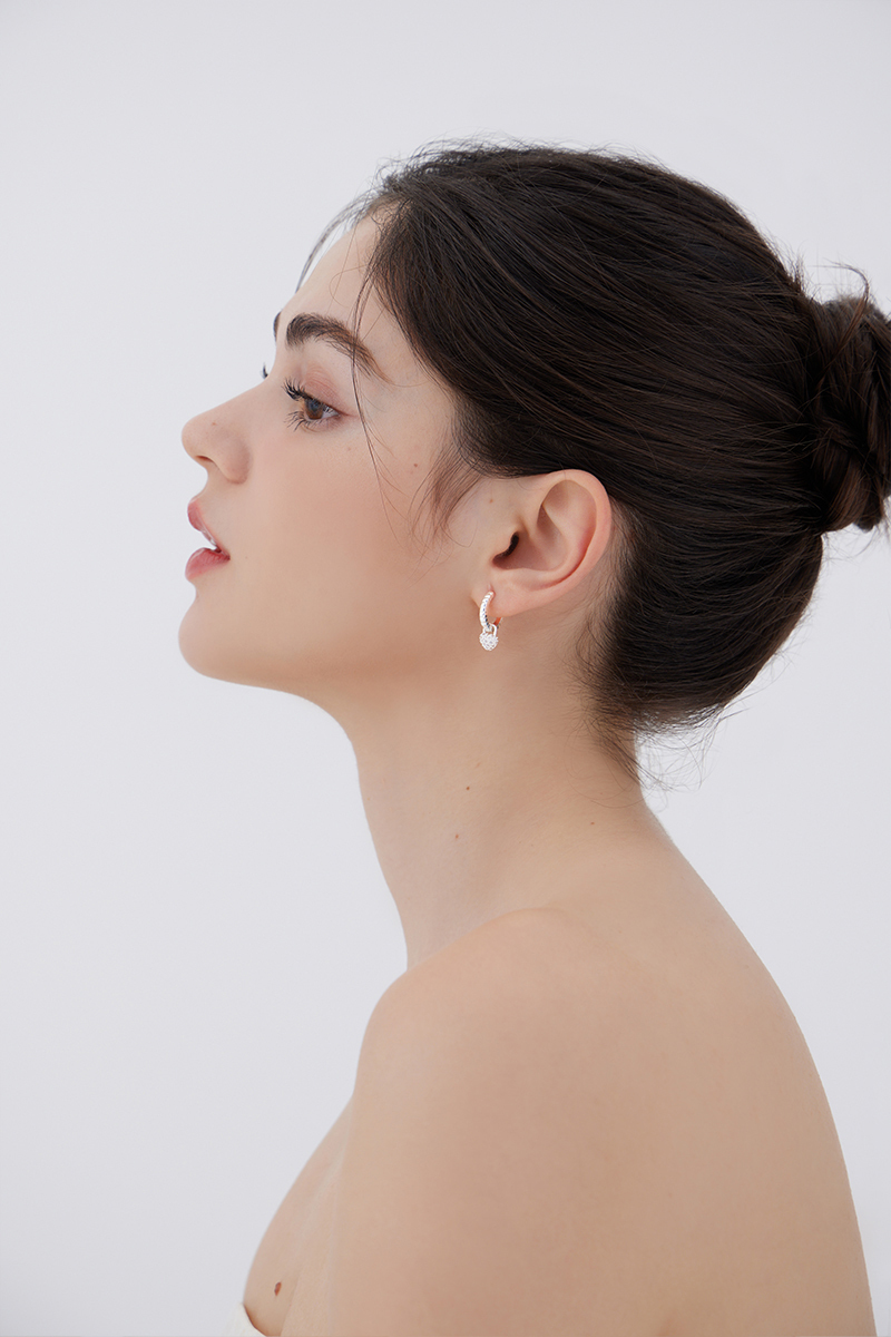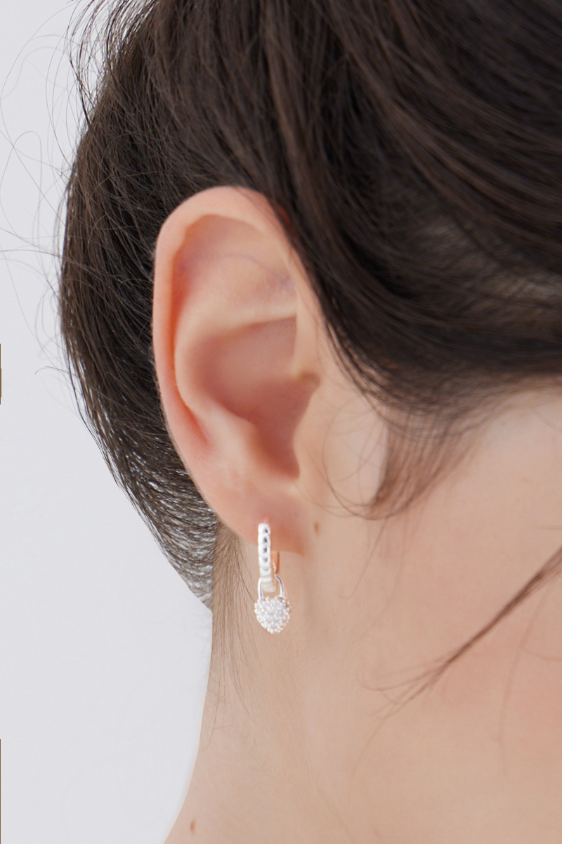鑲鑽愛心鎖頭垂墜。針式耳環