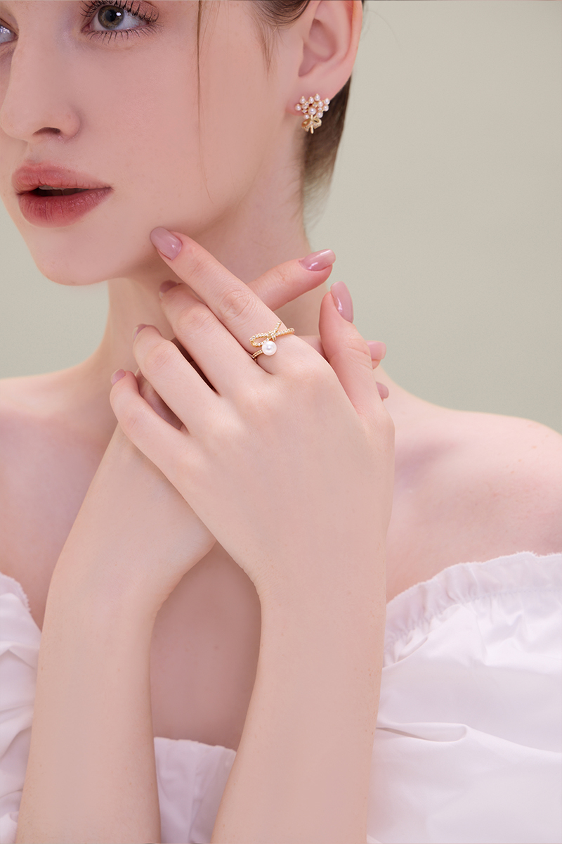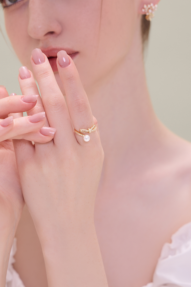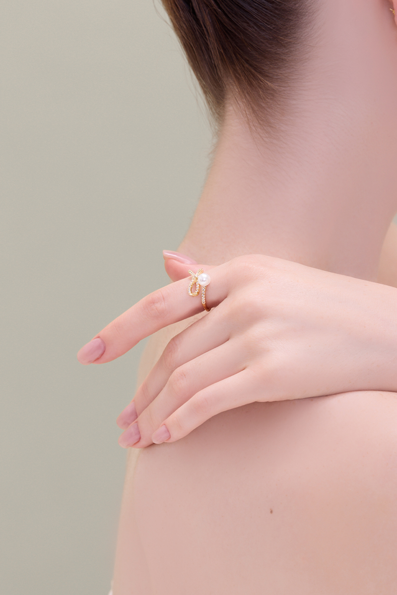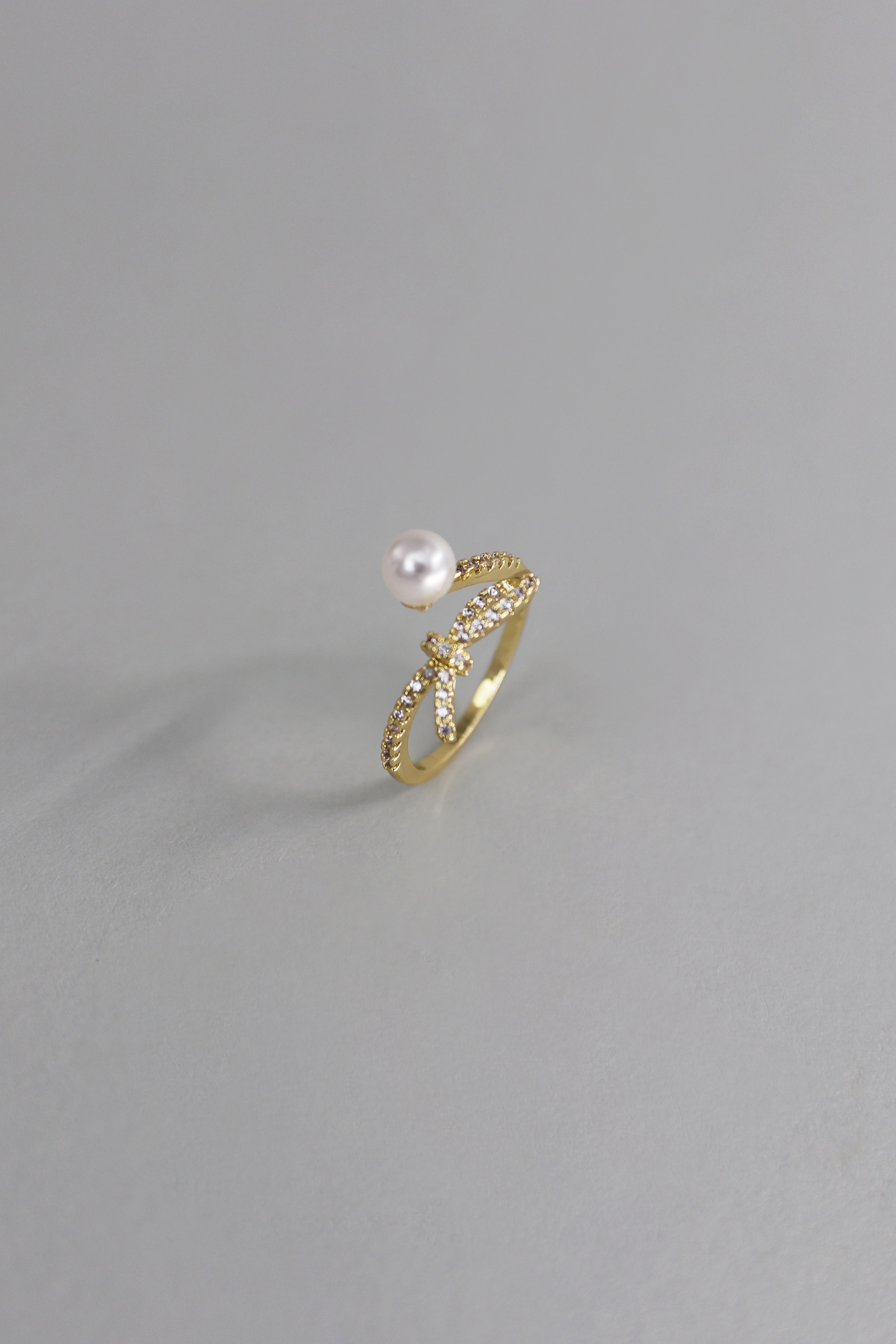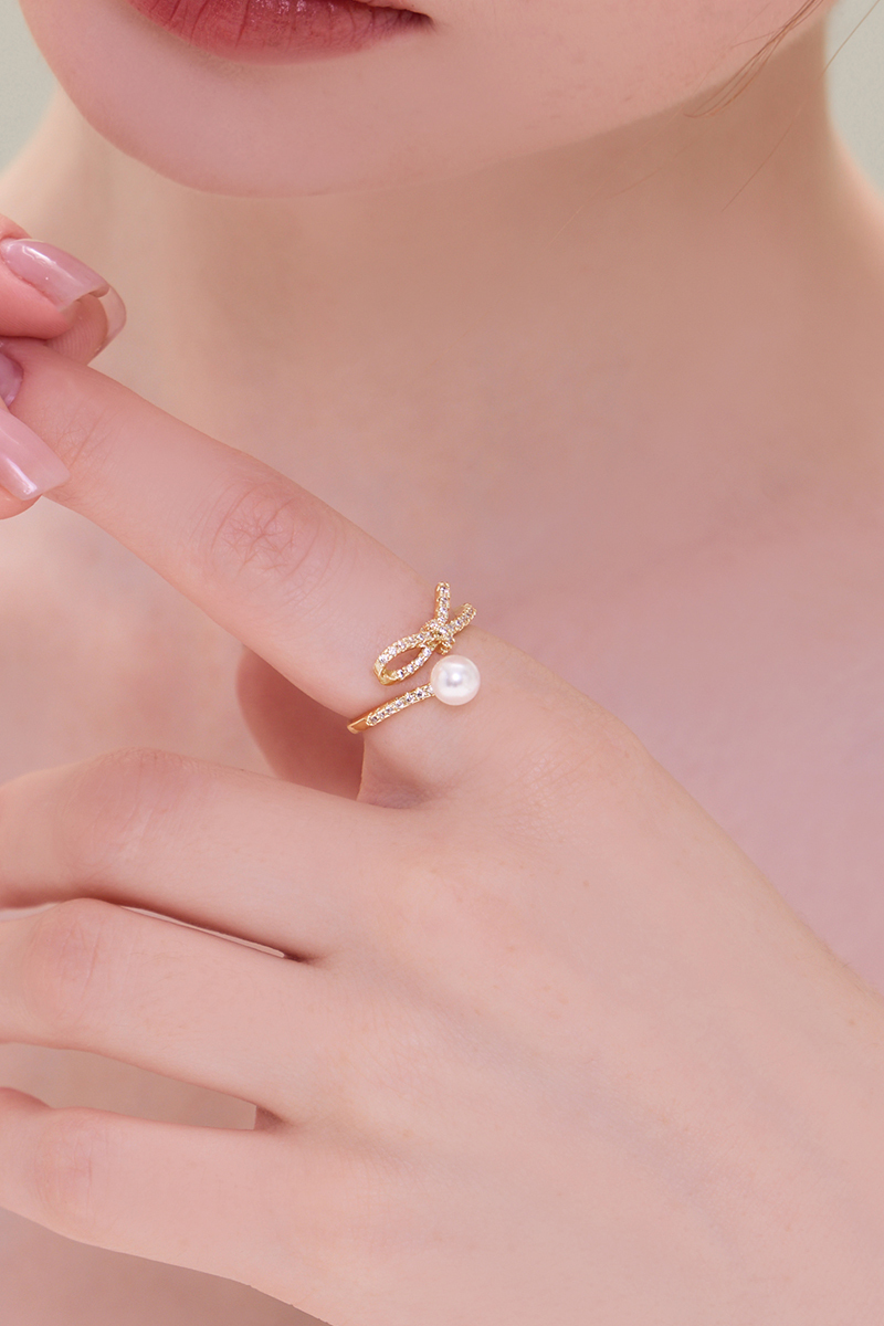 商品名稱: 鑽光蝴蝶結珍珠可調式戒指