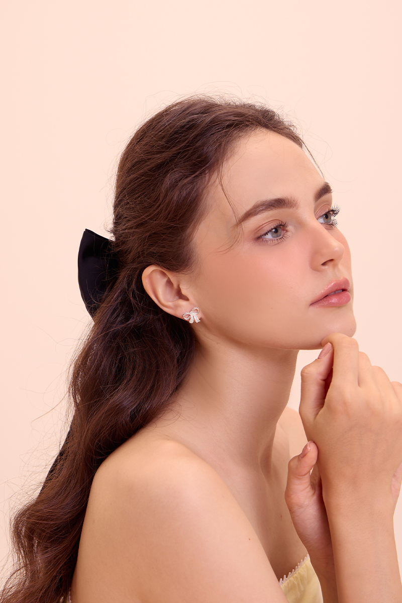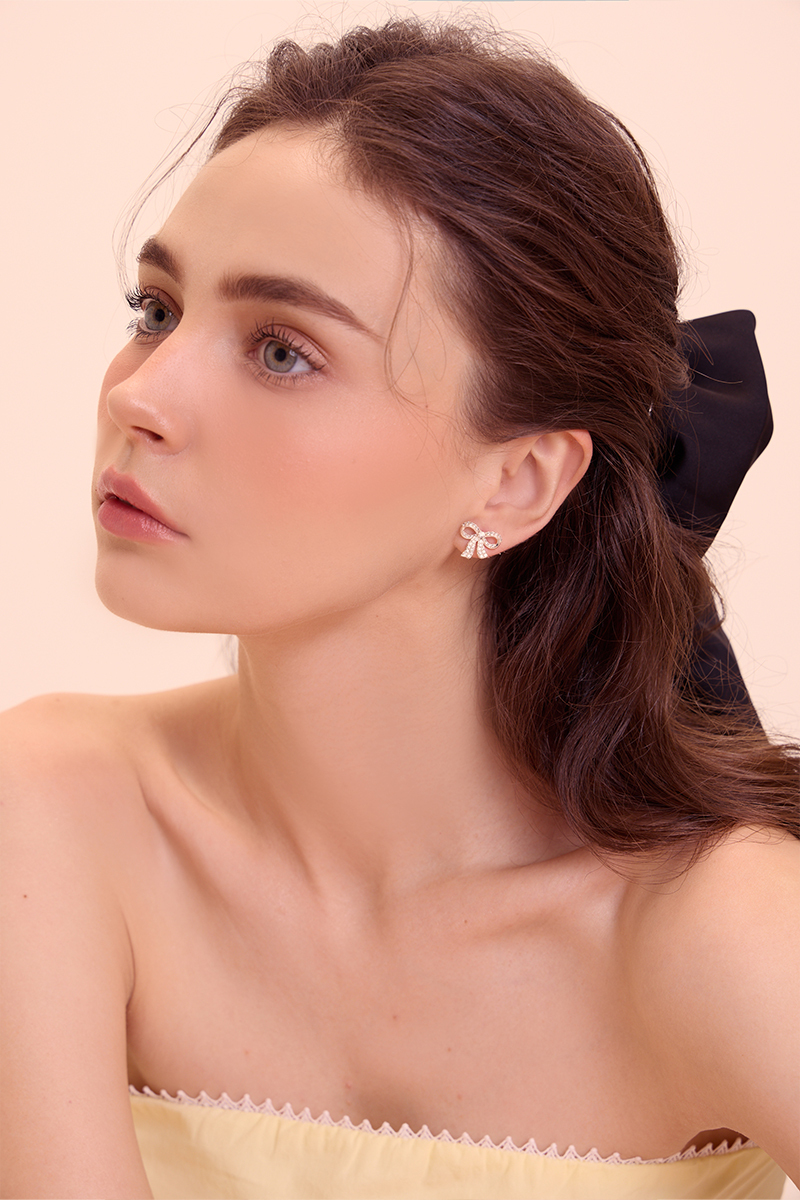 商品名稱: 閃耀滿鑽蝴蝶結。銀針耳環