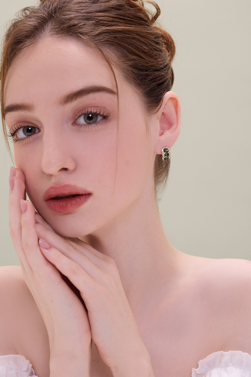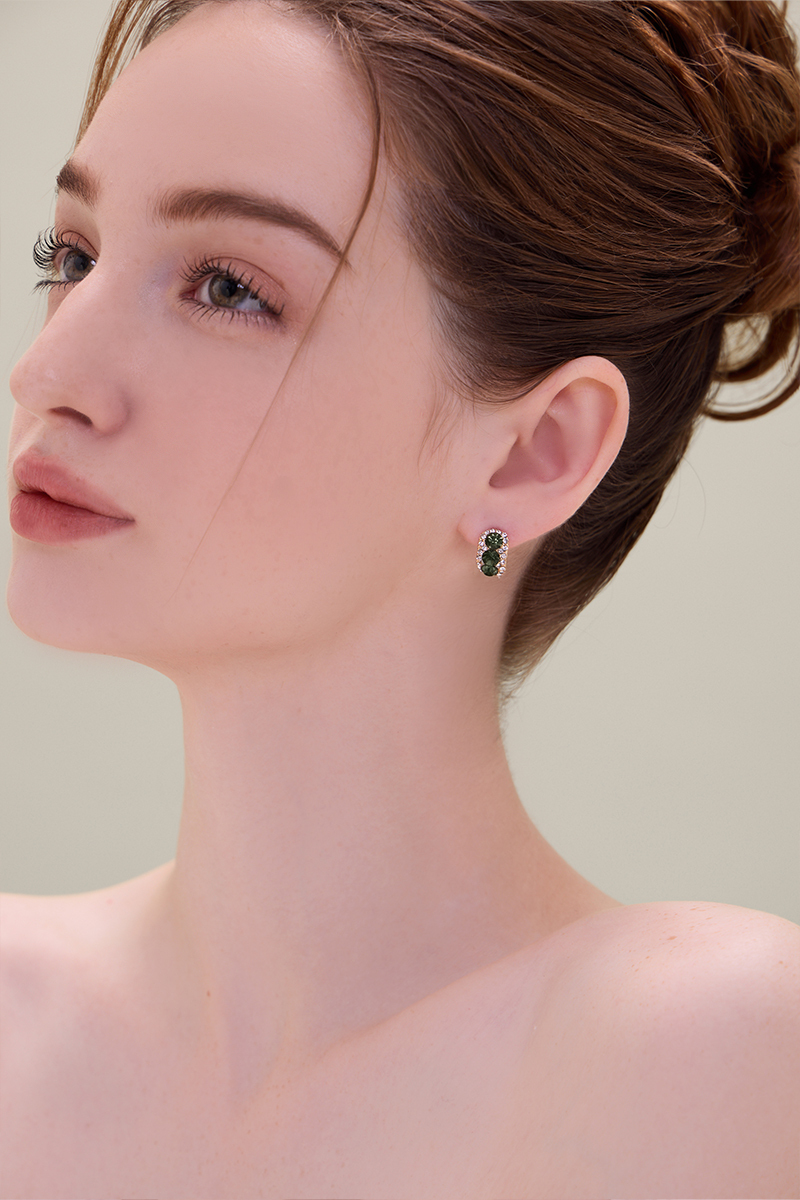 閃耀綠鋯石。銀針耳環