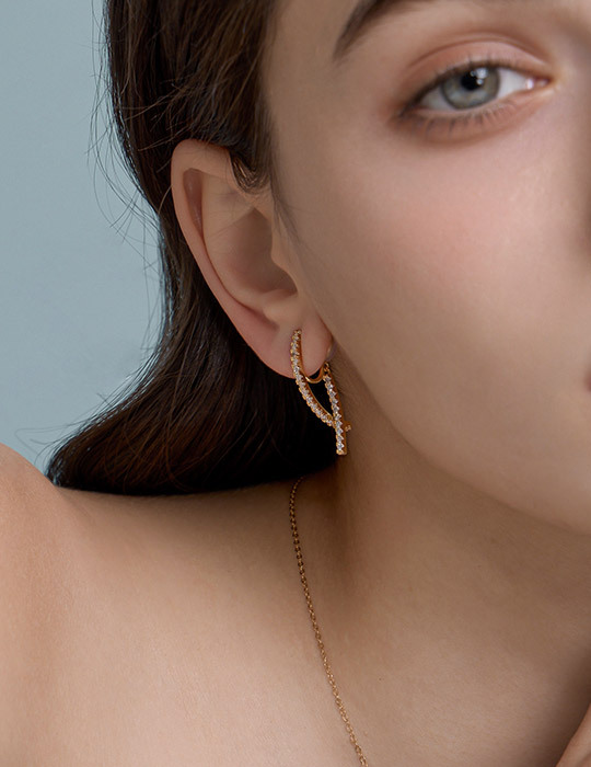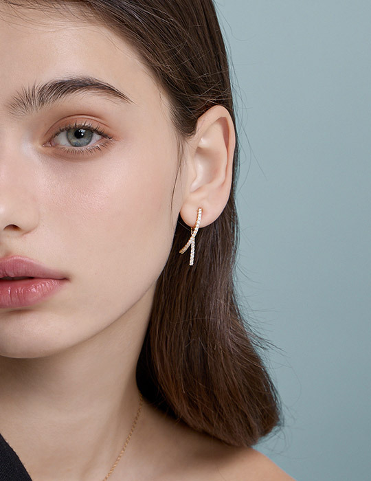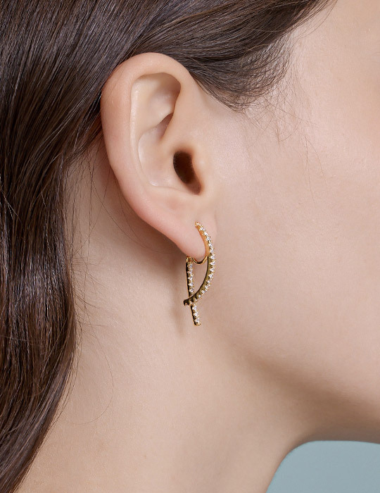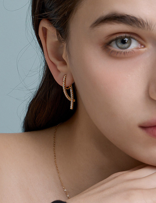 商品名稱:閃耀鋯石交織。夾式耳環(金)