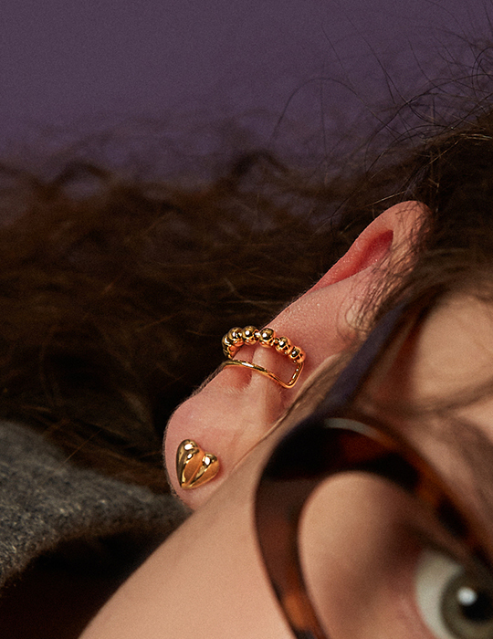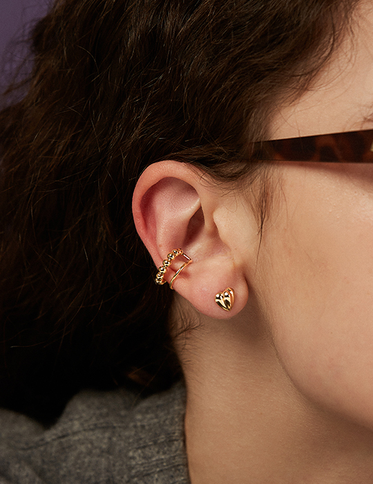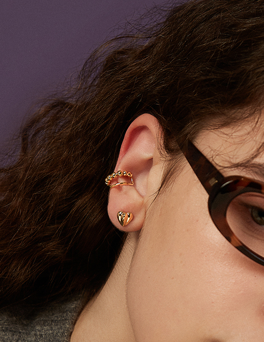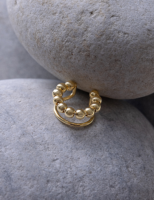 雙層圓珠耳骨夾(單支)-金