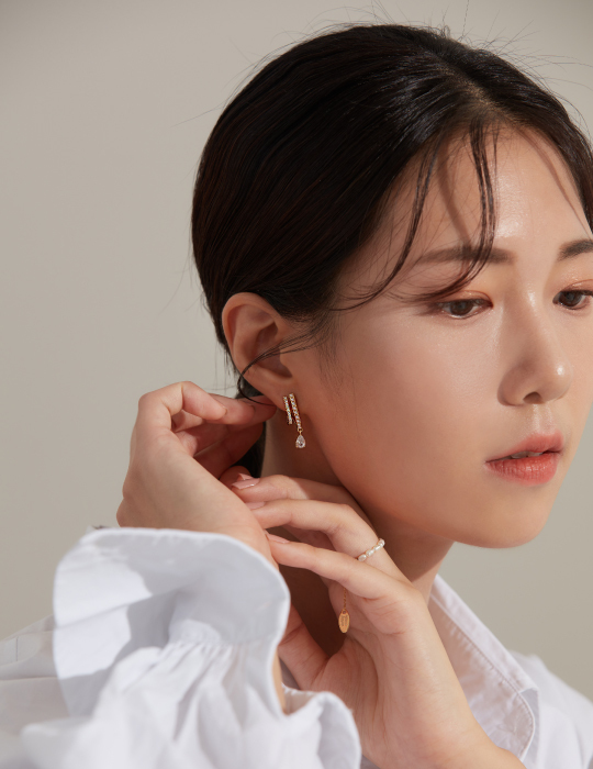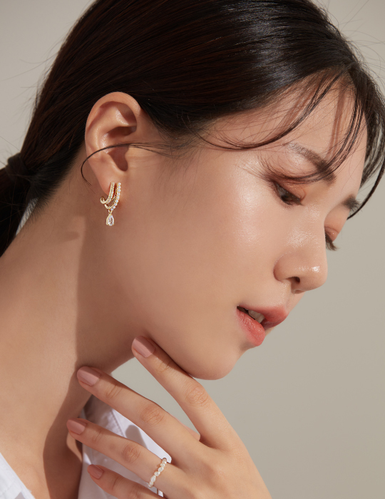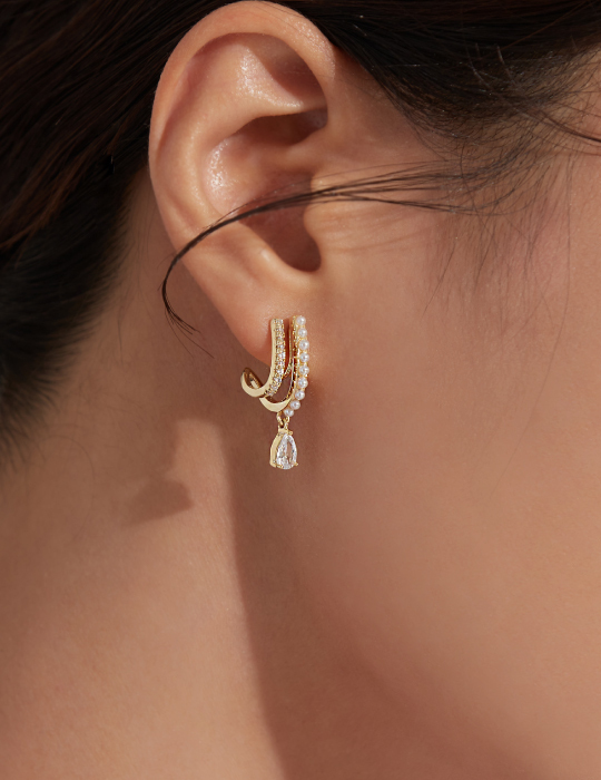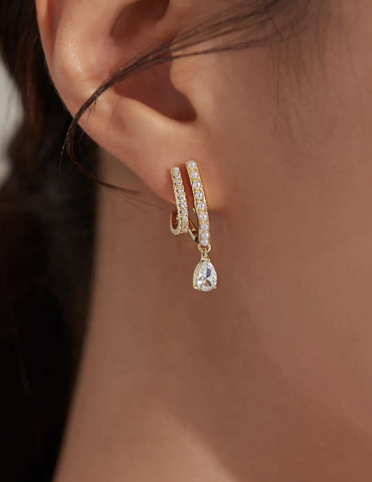 雙線條垂墜單鑽。夾式耳環
