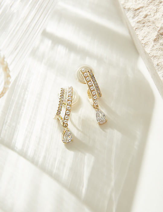 商品材質: 14K金電鍍銅/人造珍珠/鋯石/
