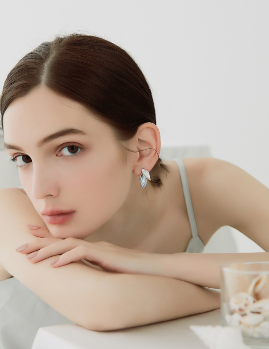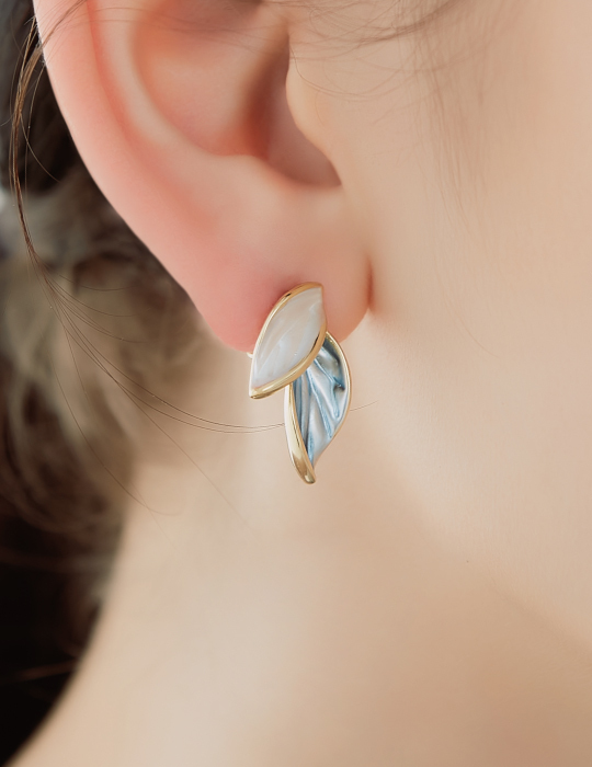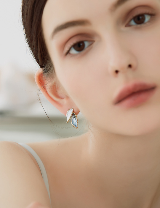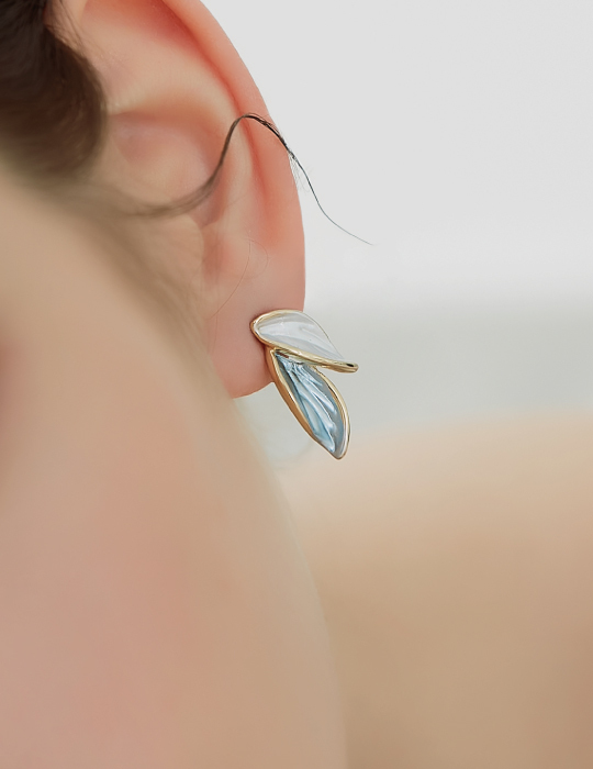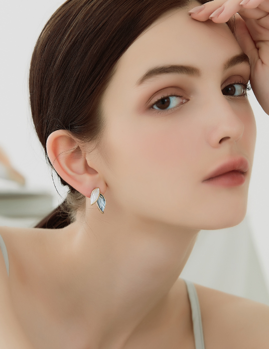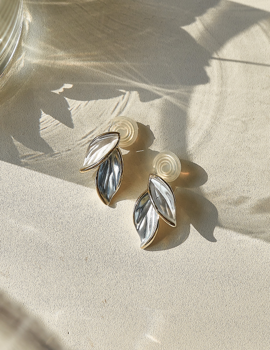雙色畫釉葉片。夾式耳環