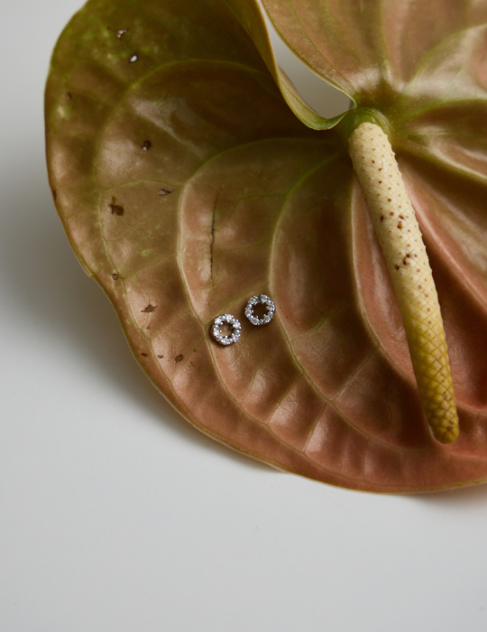 雪白圓環珍珠。銀針耳環