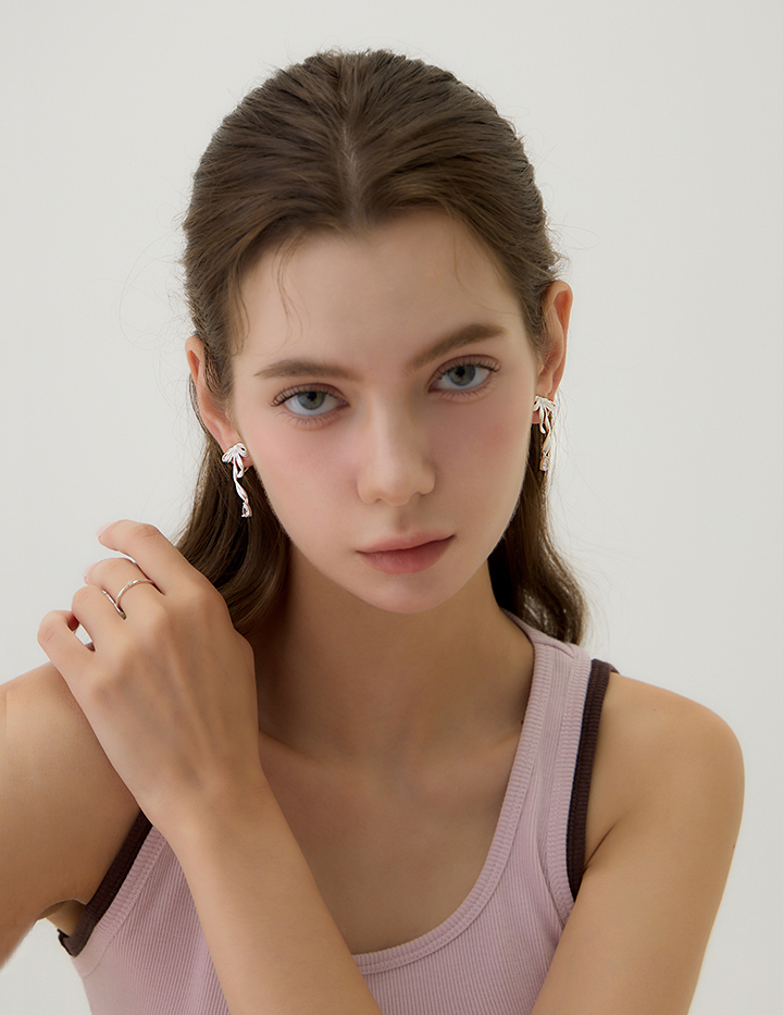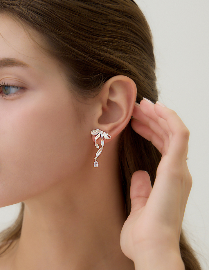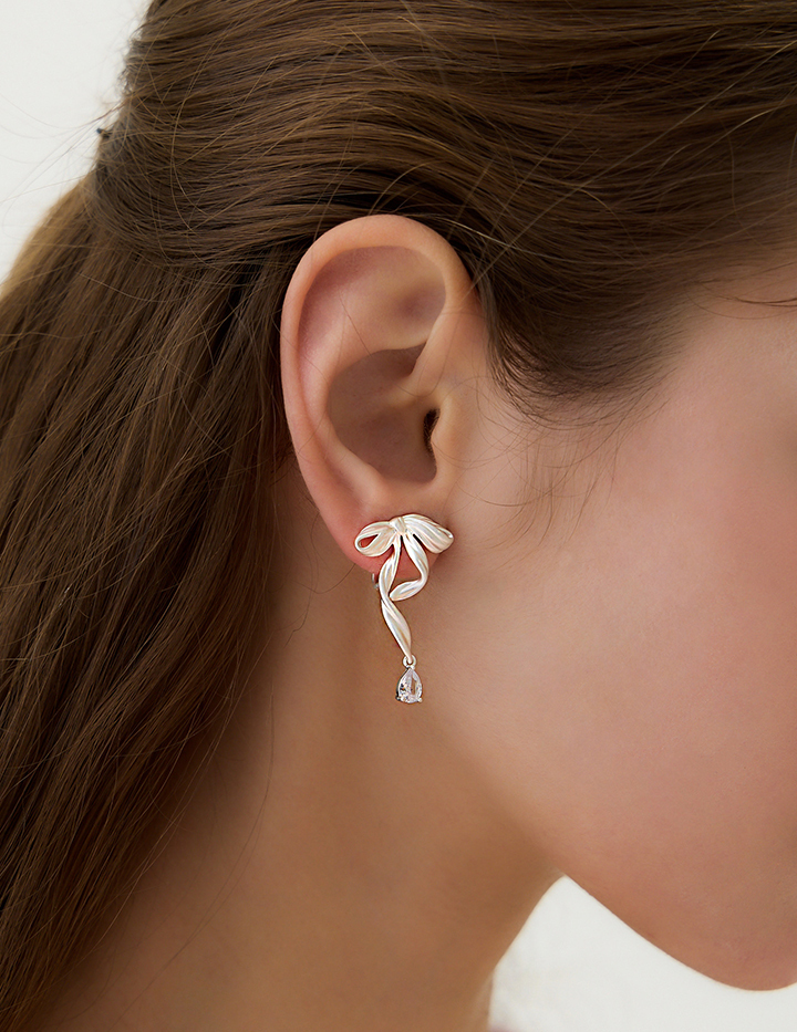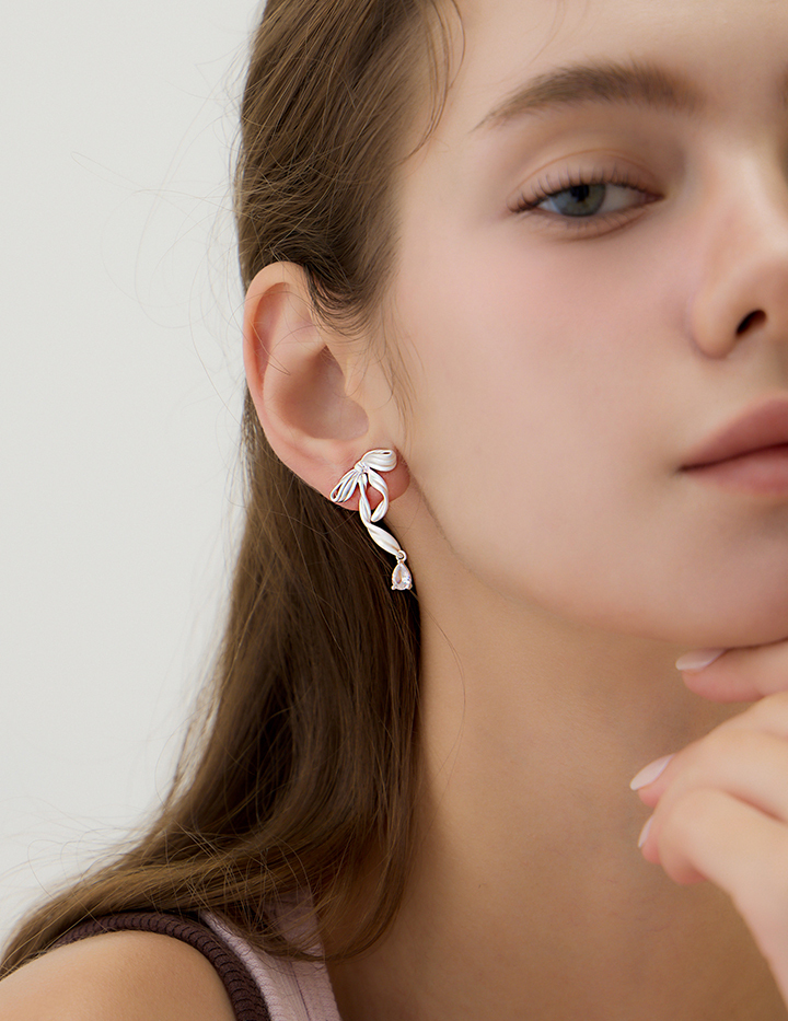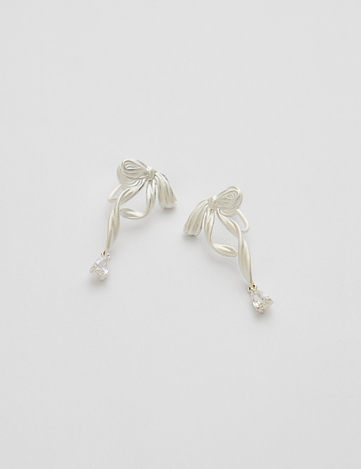 商品名稱:霧銀輕飄緞帶。夾式耳環