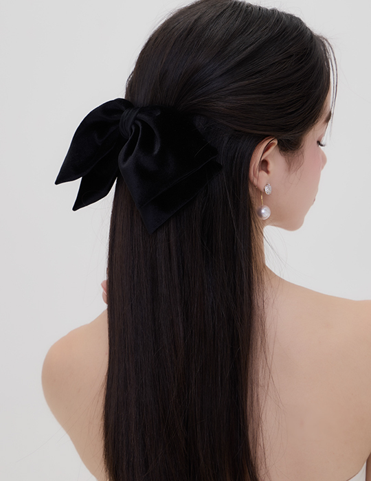 韓系絲絨蝴蝶結髮夾(黑)