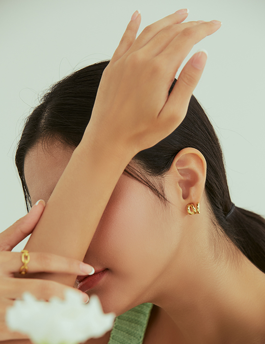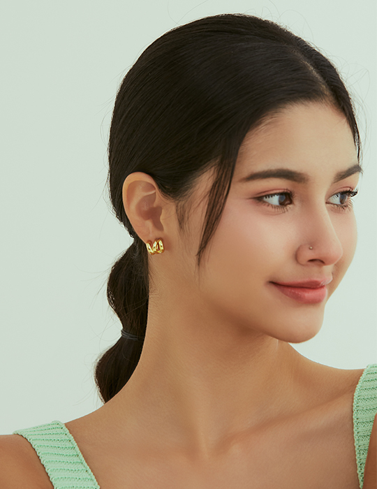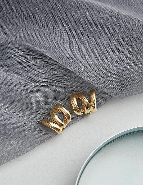 麻花交錯。夾式耳環