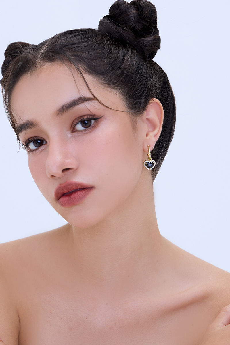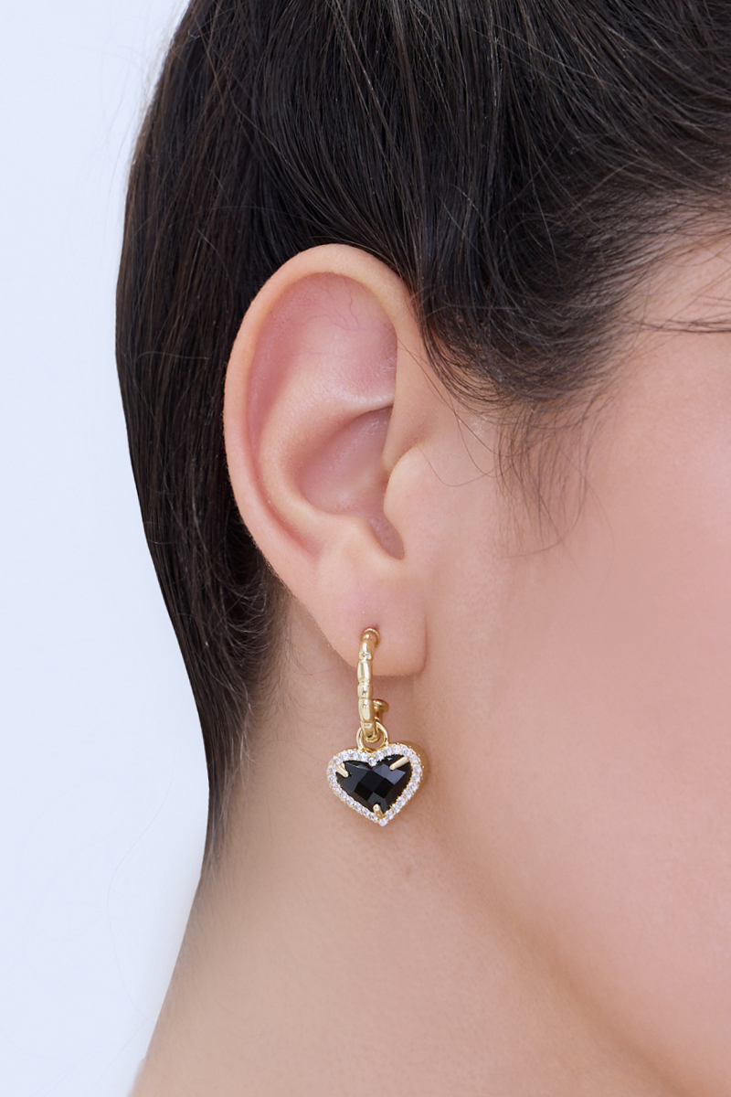黑色愛心排鑽。夾式耳環